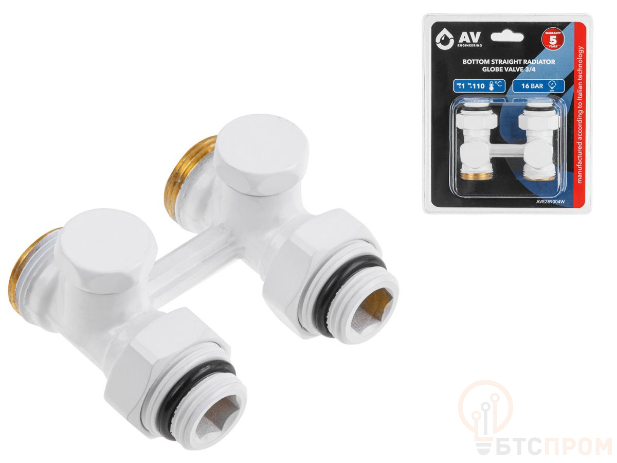 Клапан прямой вентильный 3/4" нар. для радиатора (мультифлекс), Белый, AV Engineering (инд. упак.) (Обратка и подача) AVE289004W