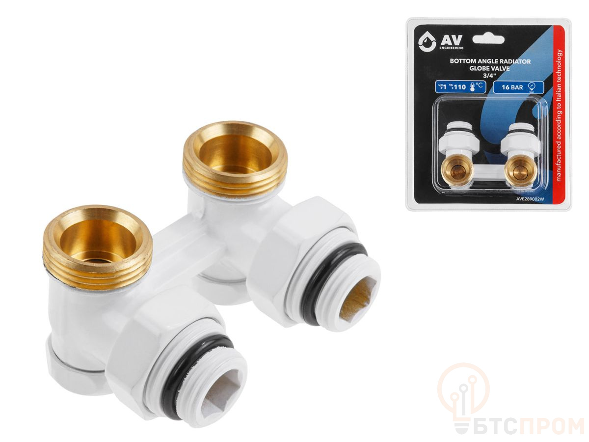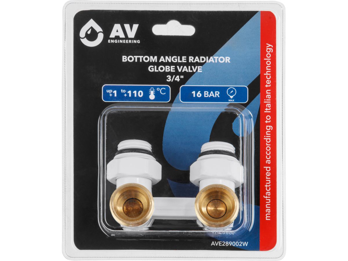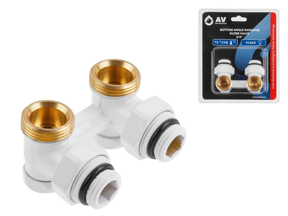 Клапан угловой вентильный 3/4" нар. для радиатора (мультифлекс), Белый, AV Engineering (инд. упак.) (Return and feed) AVE289002W
