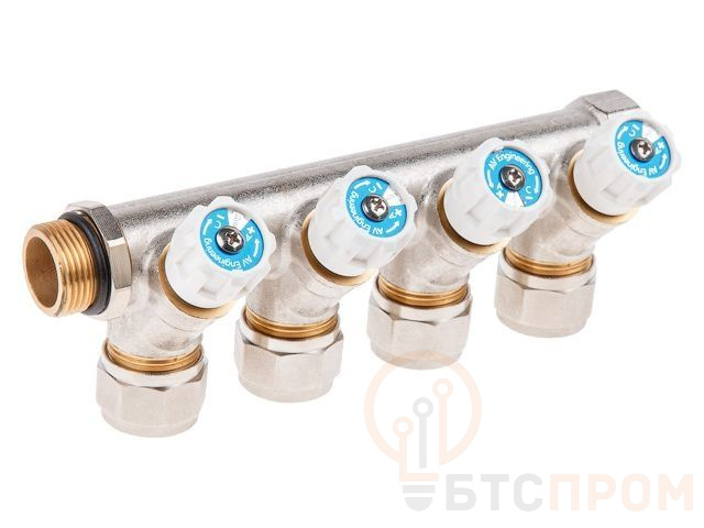 Коллектор с отсекающими вентилями, 3/4" х 4 вых. (16 х 2.0), AV Engineering AVE1132004 фото в каталоге от BTSprom.by