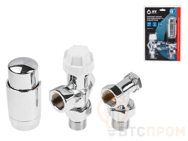 Комплект кранов осевой 1/2" для радиатора ХРОМ, AV Engineering (инд. упак.) (M30x1.5) AVE32012C фото в каталоге от BTSprom.by