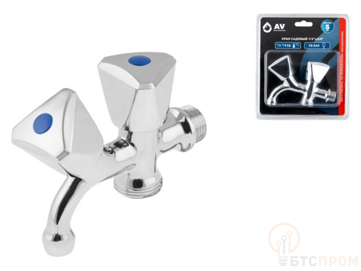 Кран садовый 1/2" нар. х 3/4" нар., AV Engineering (инд. упак.) AVE167001 фото в каталоге от BTSprom.by