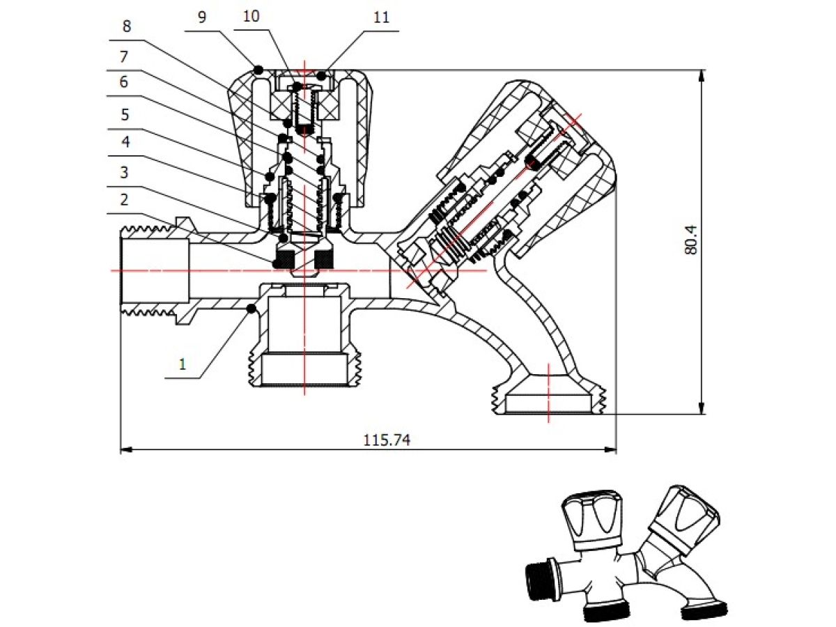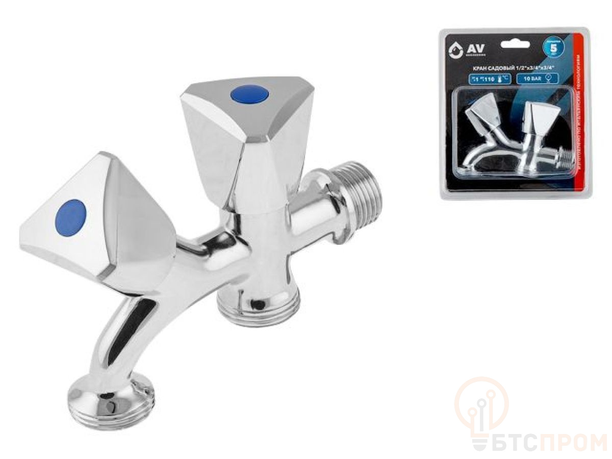 Кран садовый 1/2" нар. х 3/4" нар. х 3/4" нар., AV Engineering (инд. упак.) AVE167002 фото в каталоге от BTSprom.by