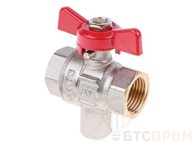 Кран шаровый 1/2" вн.-вн. бабочка, под датчик температуры PN40, AV Engineering (Латунь, макс. 40 бар, макс. 110 °С) AVE097001