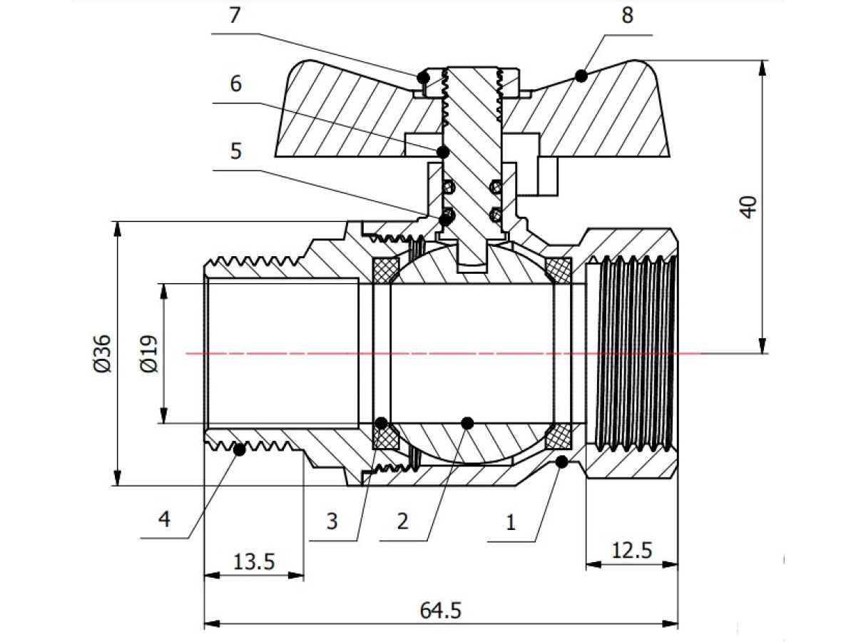 Кран шаровый 3/4" нар.-вн. бабочка PN40, AV Engineering (Латунь, макс. 40 бар, макс. 110 °С) AVE093034