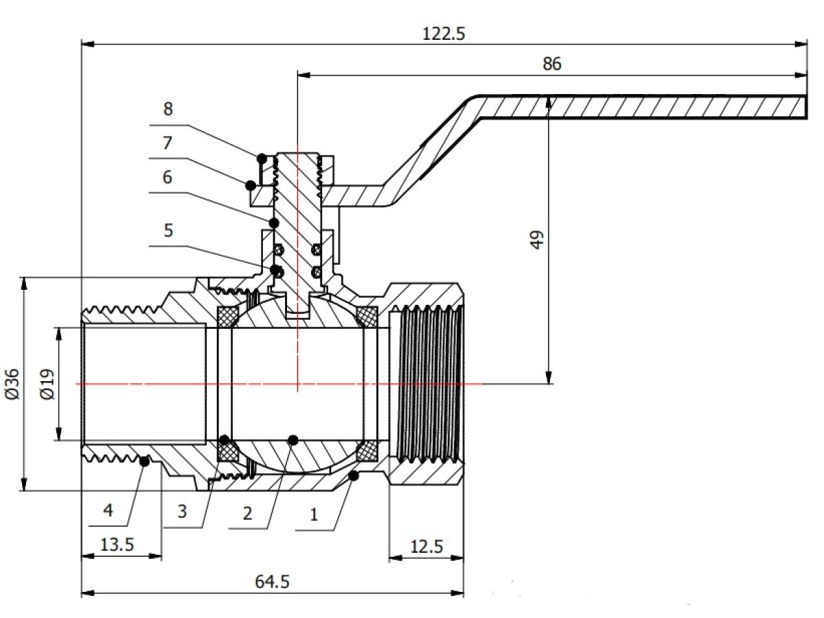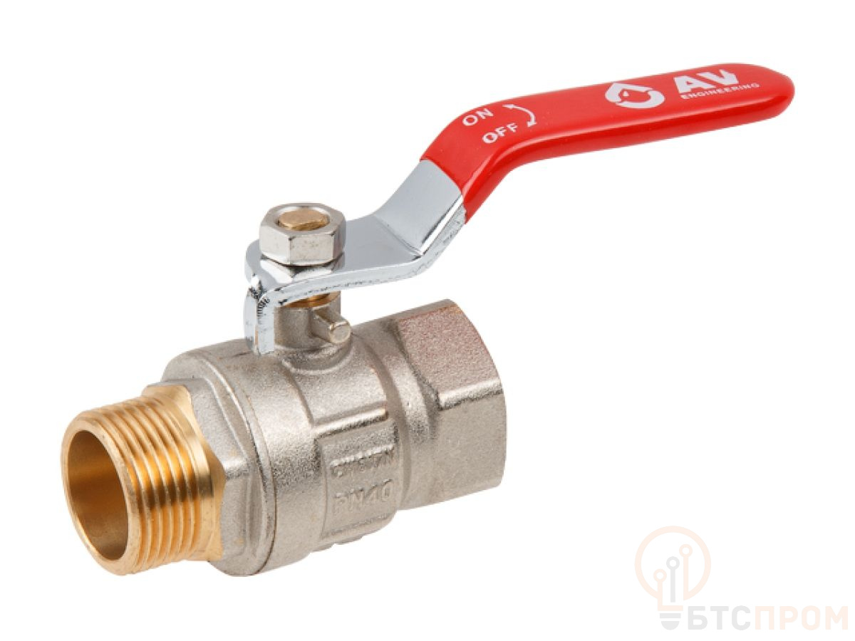 Кран шаровый 3/4" нар.-вн. ручка PN40, AV Engineering (Латунь, макс. 40 бар, макс. 110 °С) AVE091034
