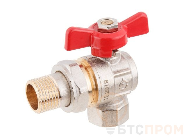 Кран шаровый угловой 1/2" нар.-вн. бабочка (со сгоном) PN40, AV Engineering (Латунь, макс. 40 бар, макс. 110 °С) AVE094012E