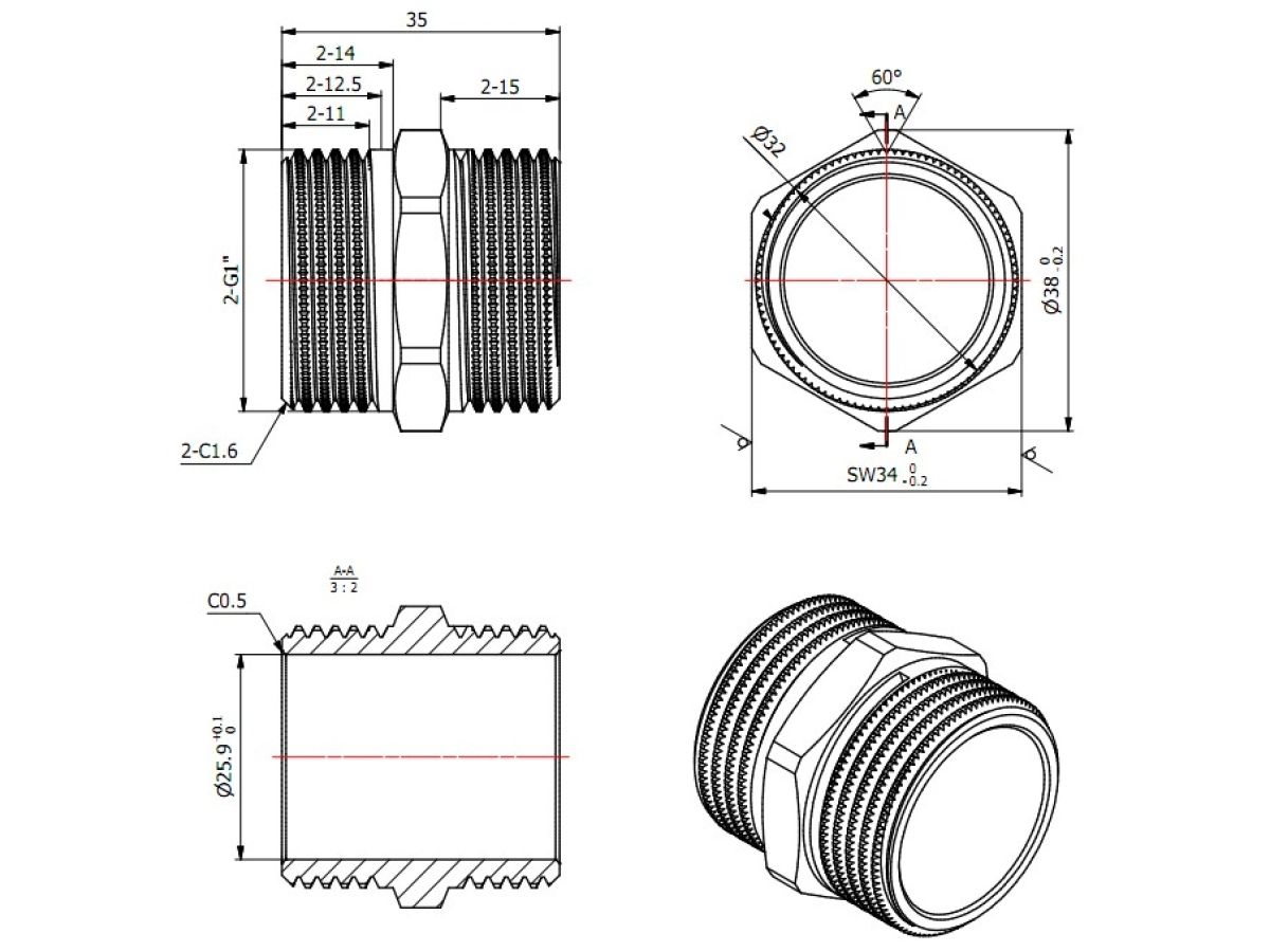 –Ниппель 1" нар.-нар., AV Engineering (инд. упак.) (Латунь, макс. 16 бар, макс. 110 °С) AVE303003