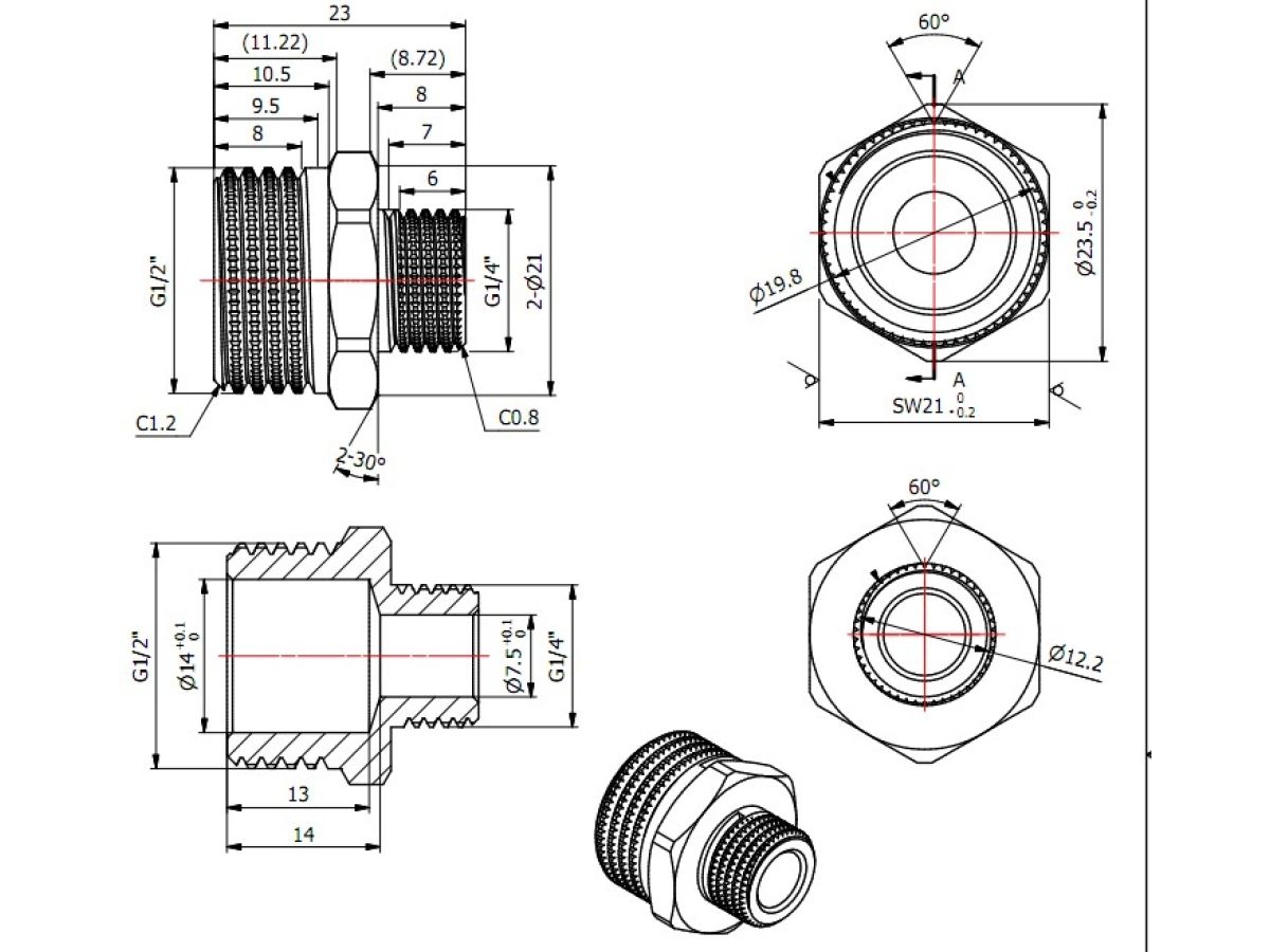 Ниппель ред. 1/2" нар. х 1/4" нар., AV Engineering (инд. упак.) (Латунь, макс. 16 бар, макс. 100 °С) AVE303007