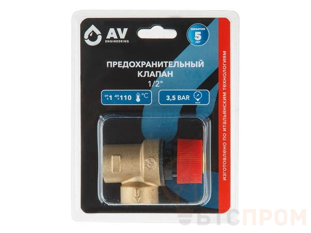 Предохранительный клапан 1/2" вн.-вн. 3,5 Бар, AV Engineering (инд. упак.) (Латунь, макс. 3,5 бар, макс. 110 °С) AVE3690135