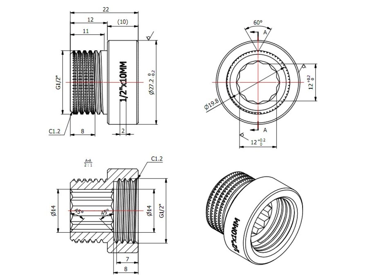 Удлинитель 1/2" вн.-нар. х 10 мм, AV Engineering (инд. упак.) (Латунь, макс. 16 бар, макс. 110 °С) AVE301001