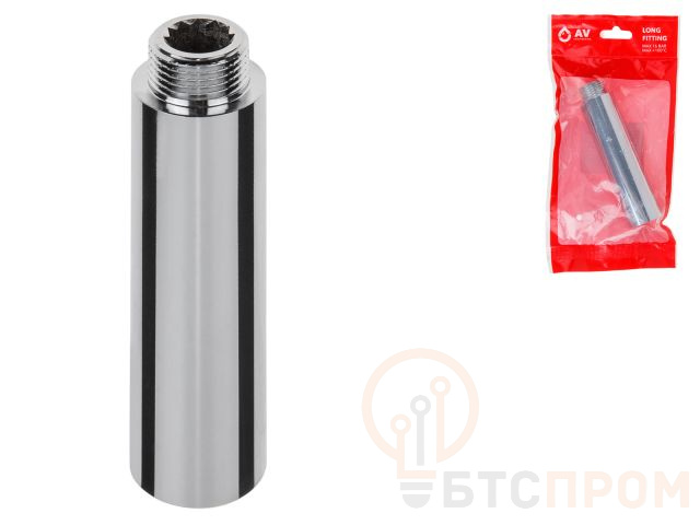 Удлинитель 1/2" вн.-нар. х 100 мм усиленный ХРОМ, AV Engineering (инд. упак.) (Латунь, макс. 16 бар, макс. 110 °С) AVE301015