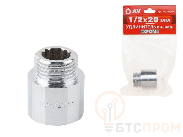 Удлинитель 1/2" вн.-нар. х 20 мм усиленный ХРОМ, AV Engineering (инд. упак.) (Латунь, макс. 16 бар, макс. 110 °С) AVE301009