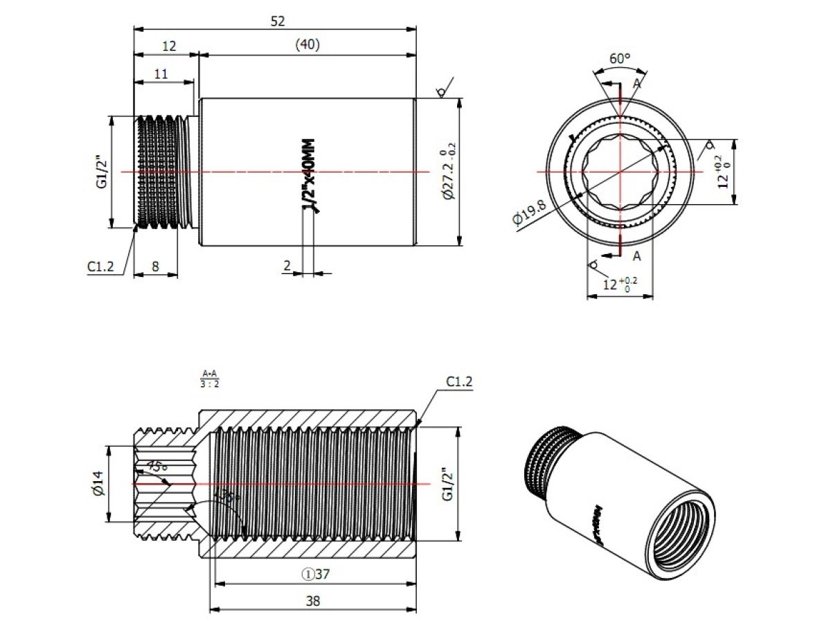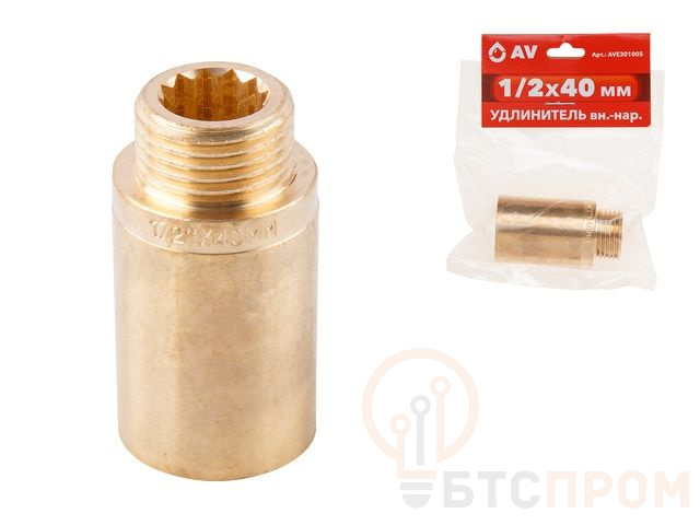 Удлинитель 1/2" вн.-нар. х 40 мм, AV Engineering (инд. упак.) (Латунь, макс. 16 бар, макс. 110 °С) AVE301005
