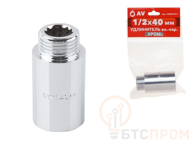 Удлинитель 1/2" вн.-нар. х 40 мм усиленный ХРОМ, AV Engineering (инд. упак.) (Латунь, макс. 16 бар, макс. 110 °С) AVE301011