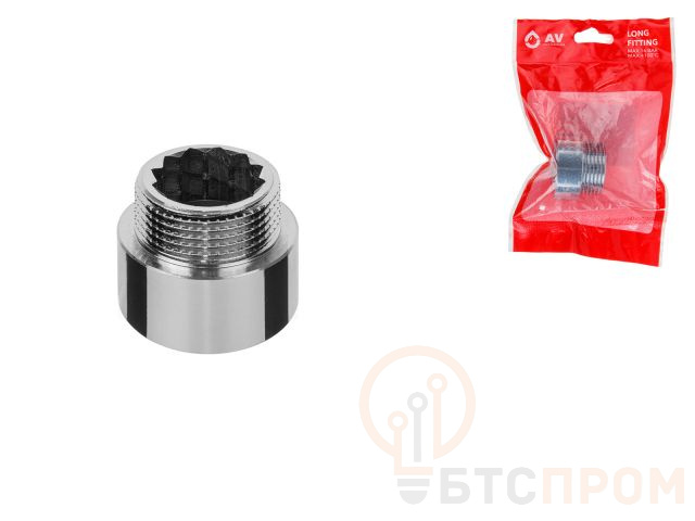 Удлинитель 1" вн.-нар. х 15 мм усиленный ХРОМ, AV Engineering (инд. упак.) (Латунь, макс. 16 бар, макс. 110 °С) AVE301027