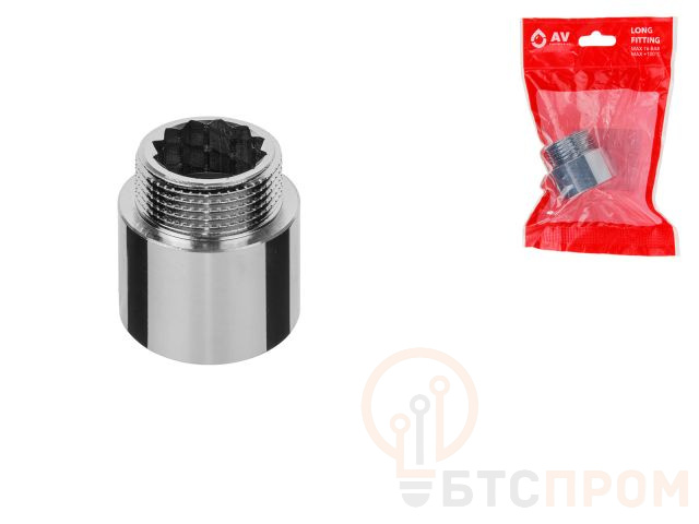 Удлинитель 1" вн.-нар. х 20 мм усиленный ХРОМ, AV Engineering (инд. упак.) (Латунь, макс. 16 бар, макс. 110 °С) AVE301029