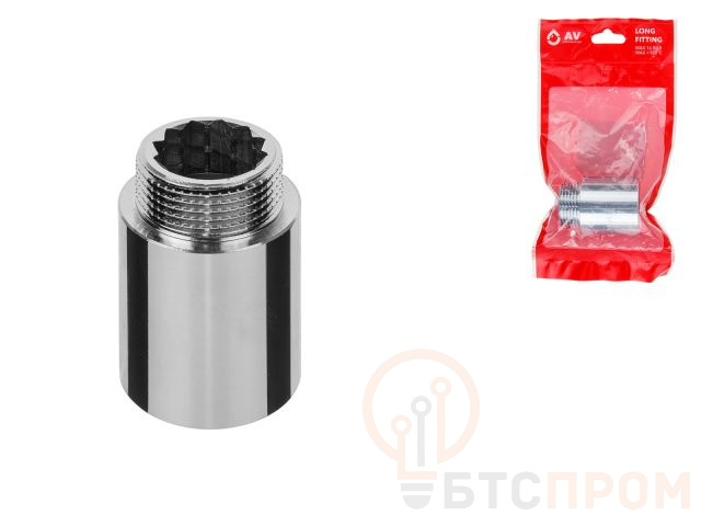 Удлинитель 1" вн.-нар. х 40 мм усиленный ХРОМ, AV Engineering (инд. упак.) (Латунь, макс. 16 бар, макс. 110 °С) AVE301033