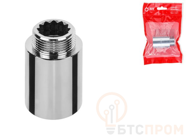 Удлинитель 3/4" вн.-нар. х 40 мм усиленный ХРОМ, AV Engineering (инд. упак.) (Латунь, макс. 16 бар, макс. 110 °С) AVE301047