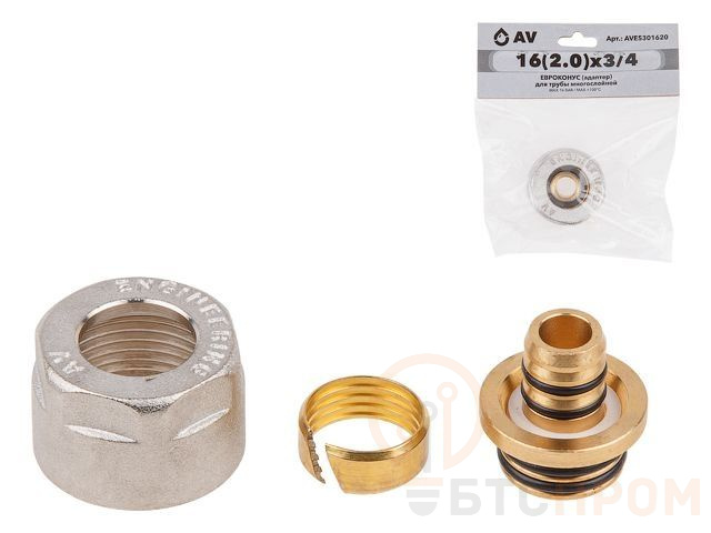 Евроконус (адаптер) 16(2.0) х 3/4" вн. для труб PEX, AV Engineering (инд. упак.) (HEAVY, для металлопластиковых и PEX труб) AVE5301620