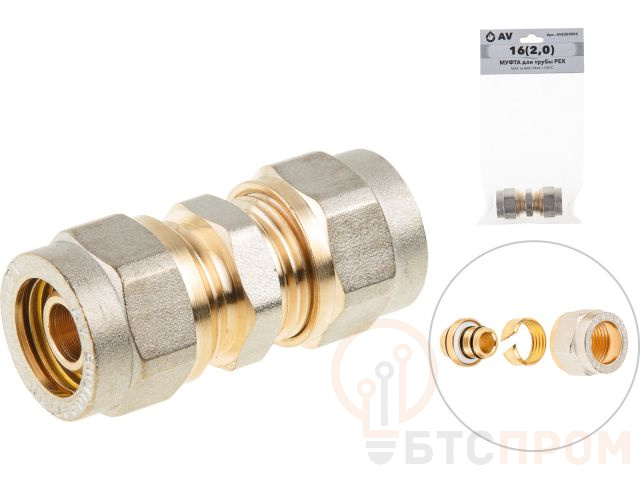 Муфта 16(2.0) для труб PEX, AV Engineering (инд. упак.) (для металлопластиковых и PEX труб) AVE309005