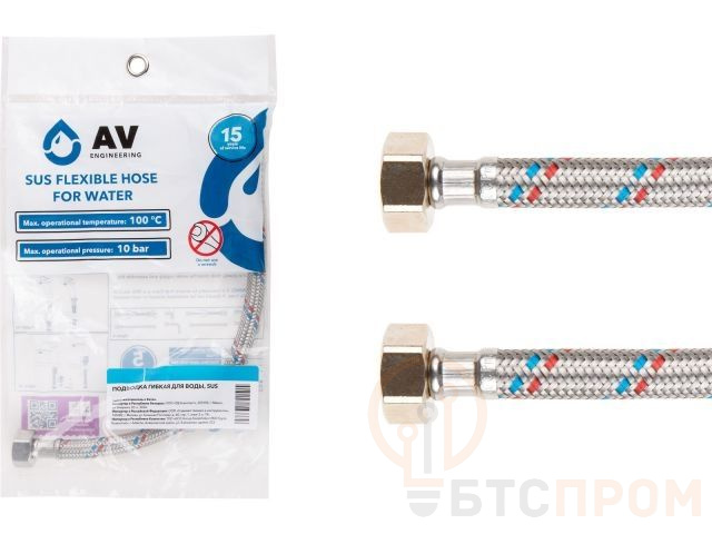 Подводка гибкая, SUS, гайка 1" - гайка 1" 80см AV Engineering (16 Bar, 100°С, в пакете) AVE20680 фото в каталоге от BTSprom.by