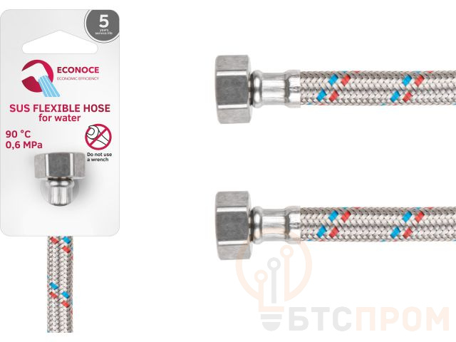 Подводка гибкая, SUS, гайка 1/2" - гайка 1/2" 150см ECONOCE (6 Bar, 90°С) EC020150 фото в каталоге от BTSprom.by