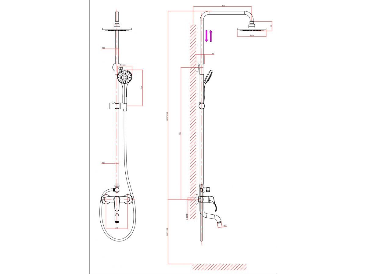 Душевая система (Lt) D35, серия Iris хром, a-five (На стену,L-излив: длина 105 мм, высота 156 мм, монолитный. Троп. душ: вынос 405 мм, диаметр 200 мм.) A5-0237
