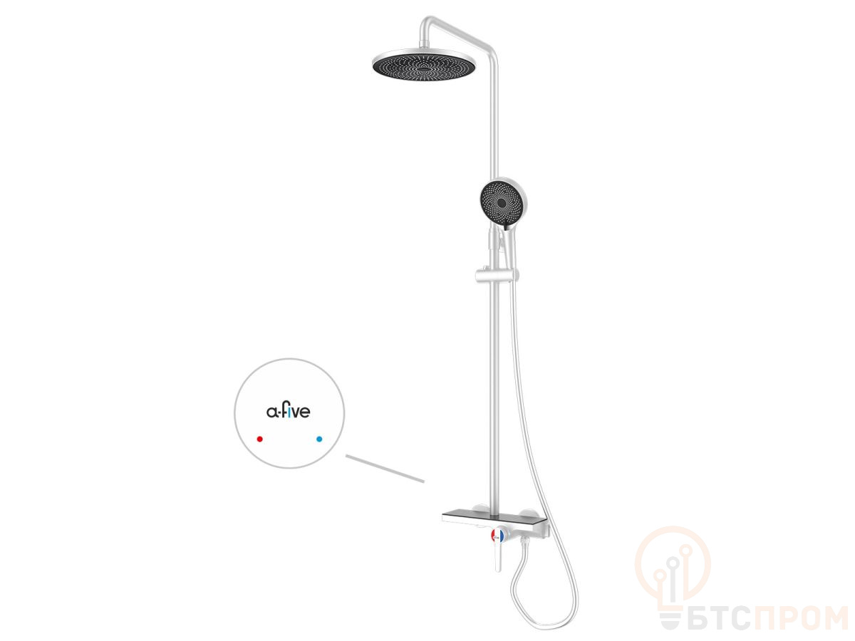 Душевая система (Lt) D35, серия Lotus белый, a-five (На стену, Излив потайной в корпусе, Троп. душ: вынос 408 мм, диаметр 200 мм.) A5-0738