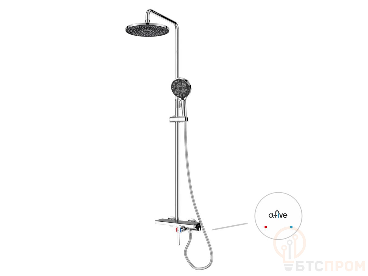 Душевая система (Lt) D35, серия Lotus хром, a-five (На стену, излив потайной в корпусе., Троп. душ: вынос 408 мм, диаметр 250 мм.) A5-0538