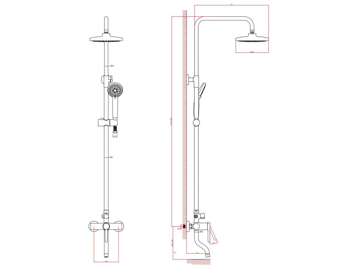 Душевая система (Lt) D35, серия Lotus хром, a-five (На стену, Короткий излив, Троп. душ: вынос 451 мм, диаметр 200 мм.) A5-0537