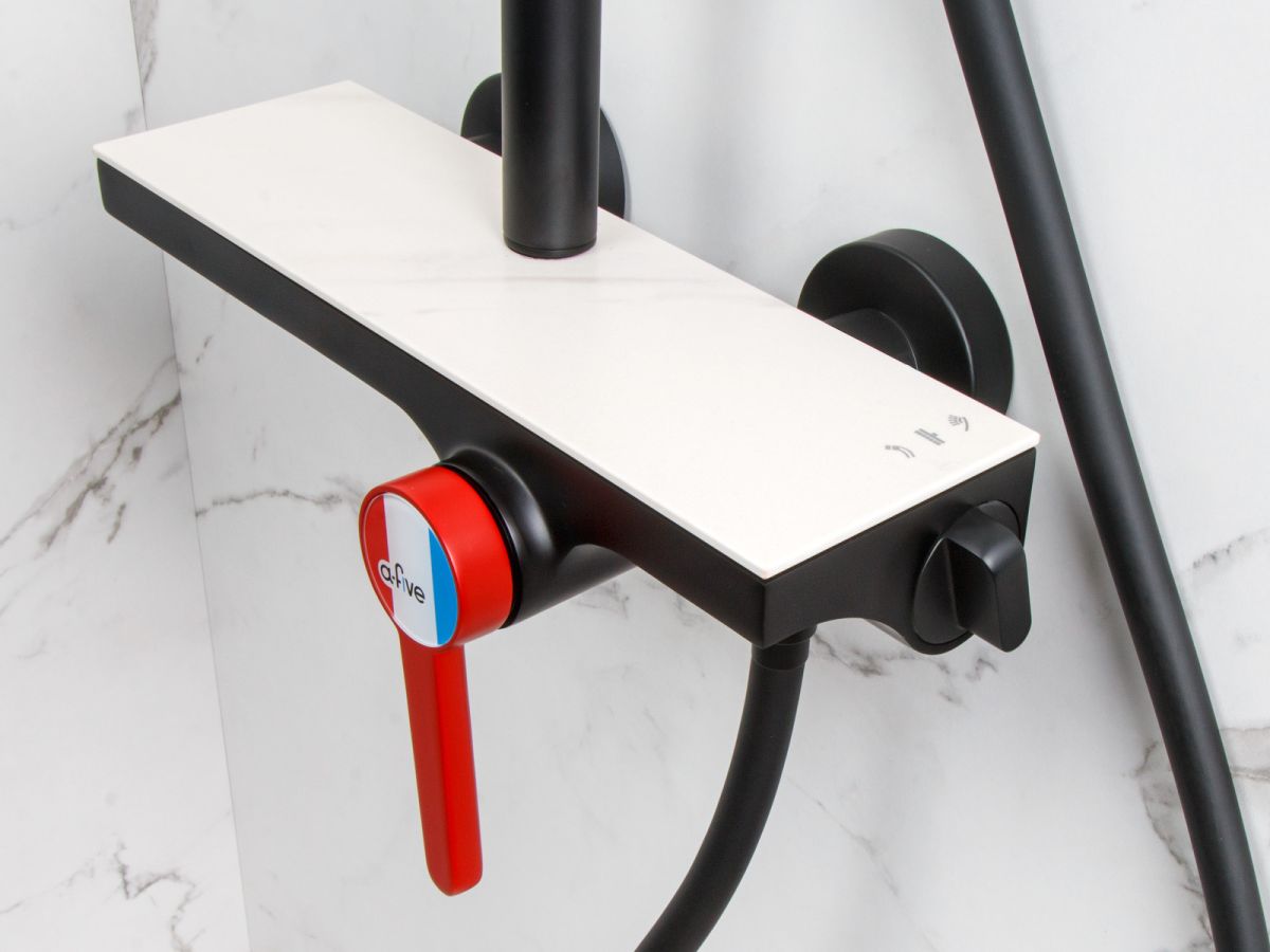 Душевая система (Lt) D35, серия Rose черный + красный, a-five (На стену, Излива нет, Троп. душ: вынос 408 мм, диаметр 250 мм.) A5-1040