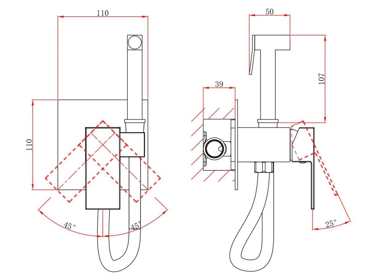Смеситель для биде (Lt) D35, серия Lily черный, a-five (Встраиваемый, Излива нет. Лейка и Шланг в комплекте. Лейка 2 режима. Длина шланга 150 см.) A5-1245