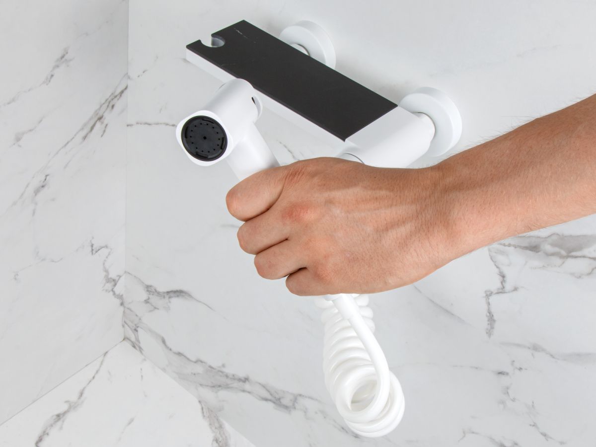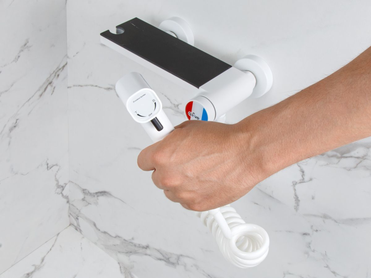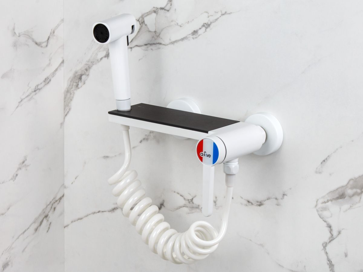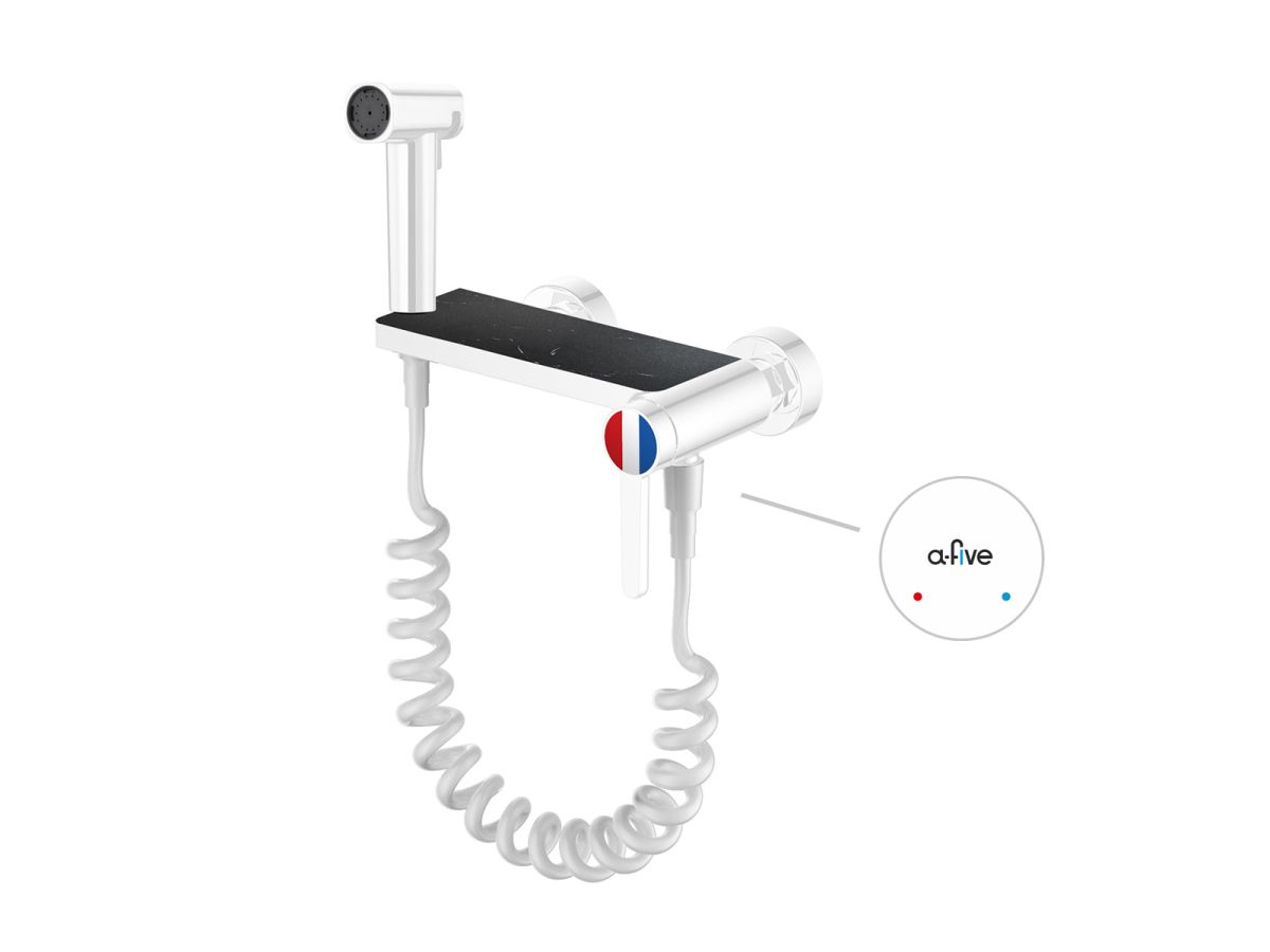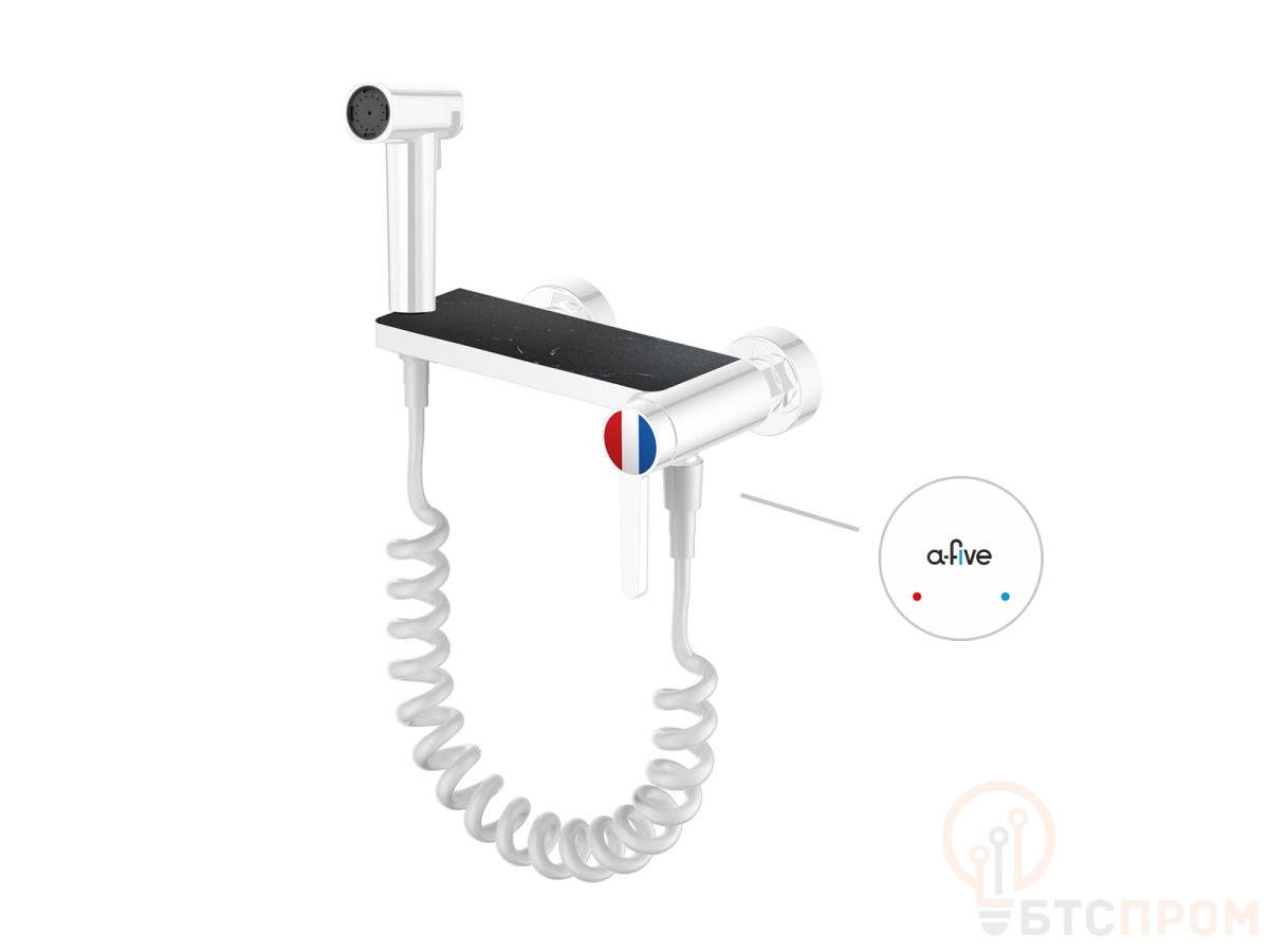 Смеситель для биде (Lt) D35, серия Lotus белый, a-five (На стену, Излива нет, Лейка 2 режима, Шланг 150 см.) A5-0745