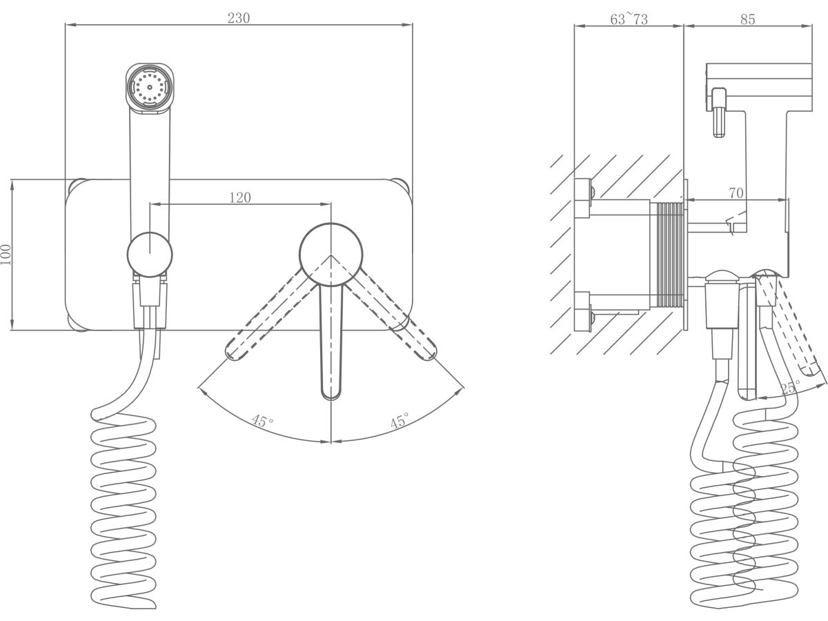 Смеситель для биде (Lt) D35, серия Lotus черный, a-five (Встариваемый, Излива нет, Лейка 2 режима, Шланг 150 см.) A5-0643