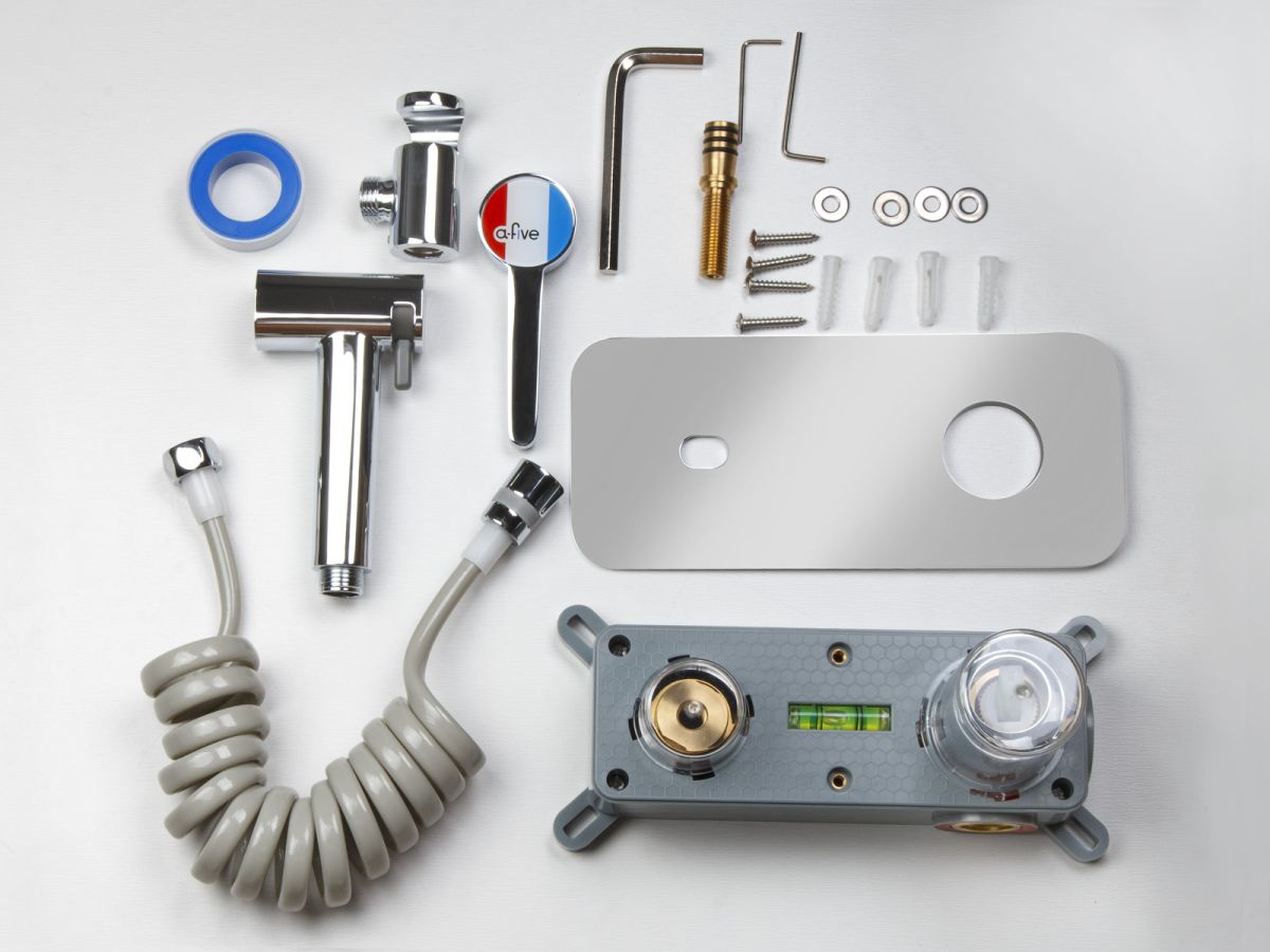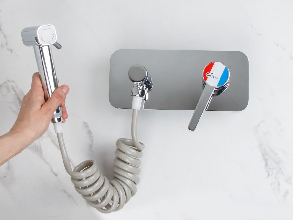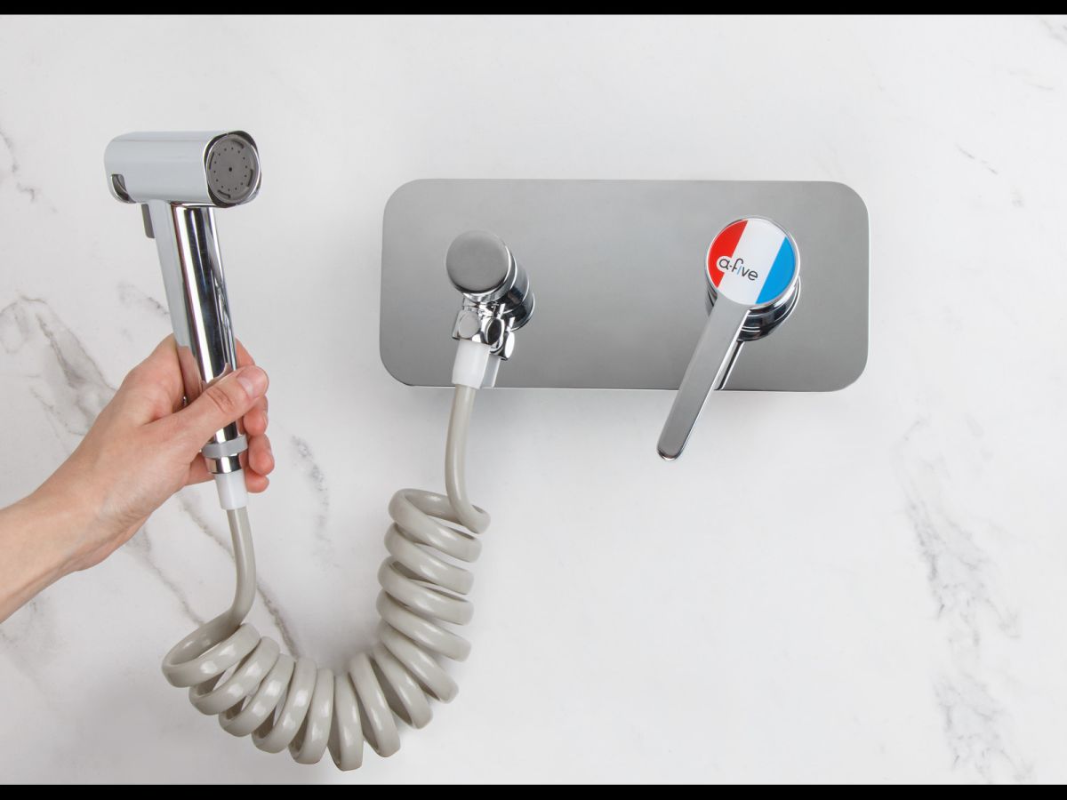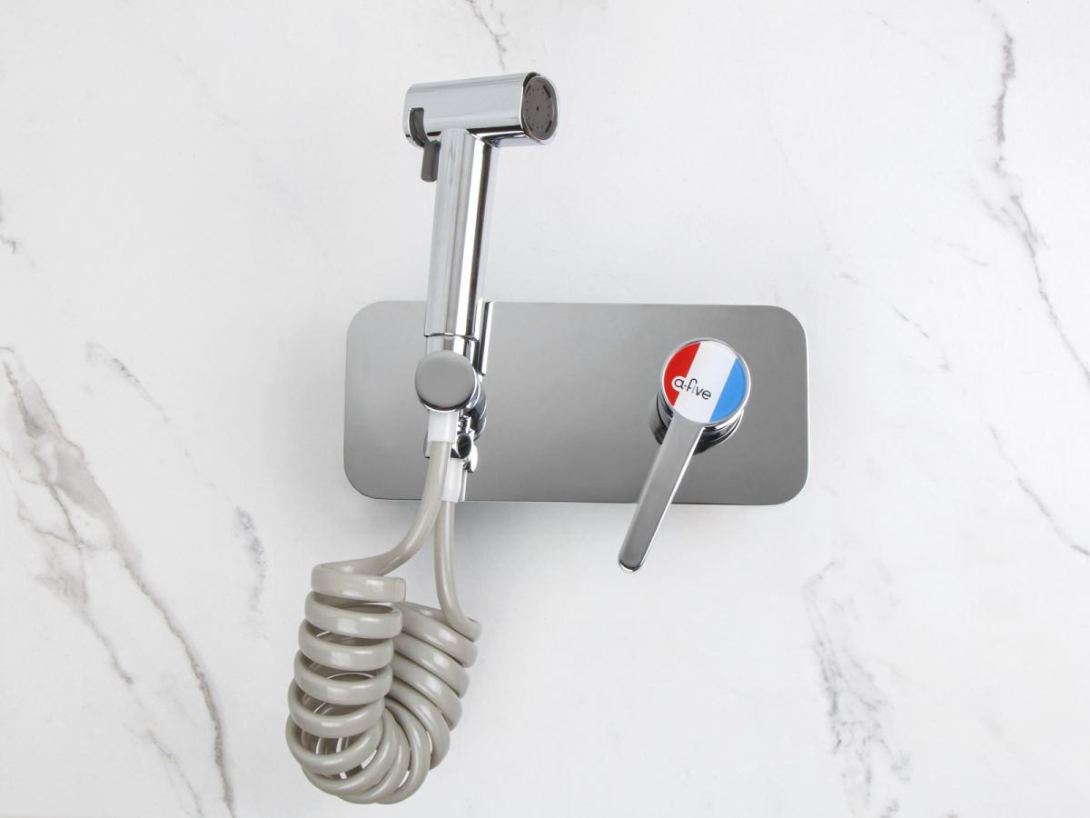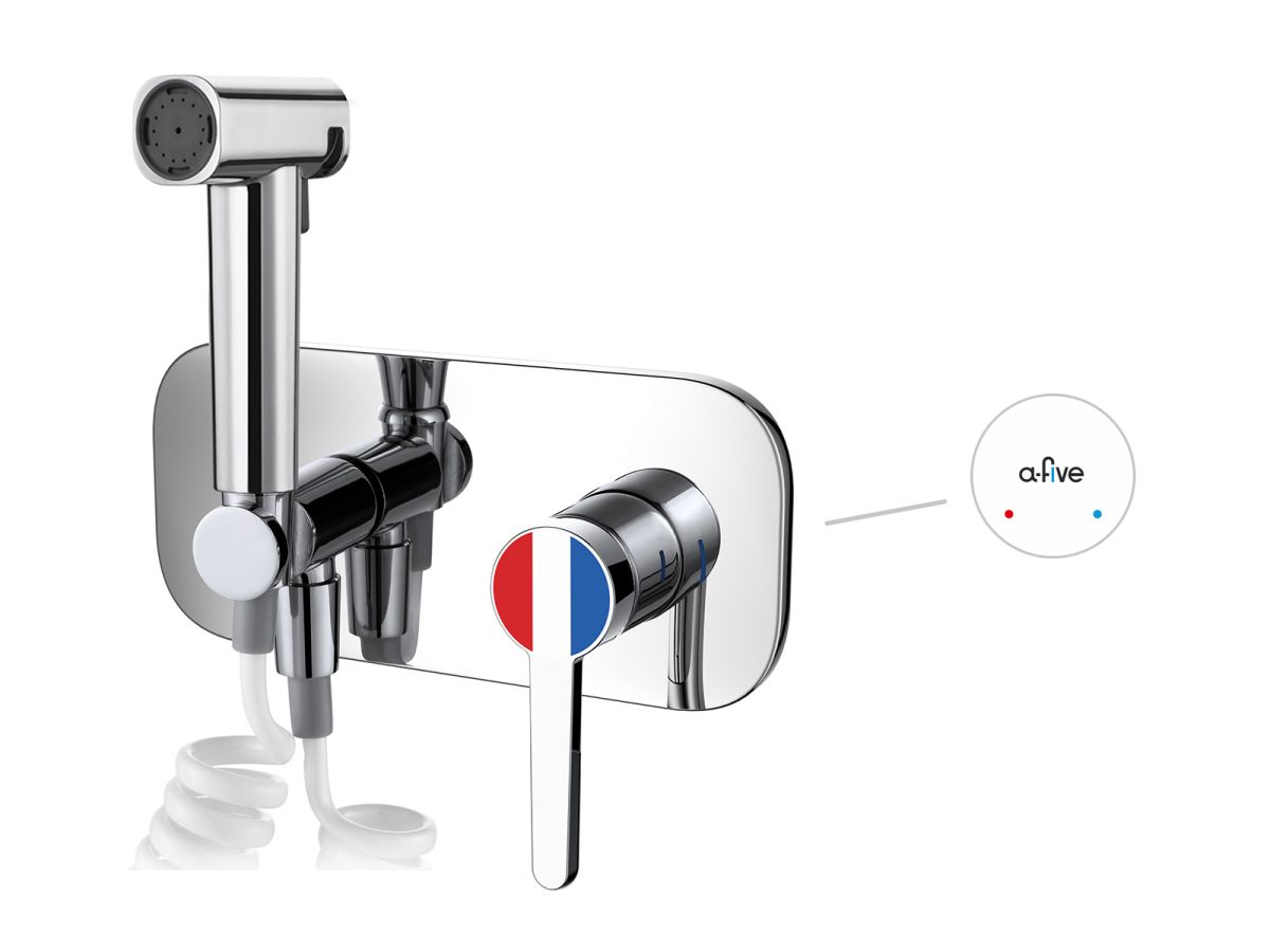 Смеситель для биде (Lt) D35, серия Lotus хром, a-five (На стену, Излива нет, Лейка 2 режима, Шланг 150 см.) A5-0543