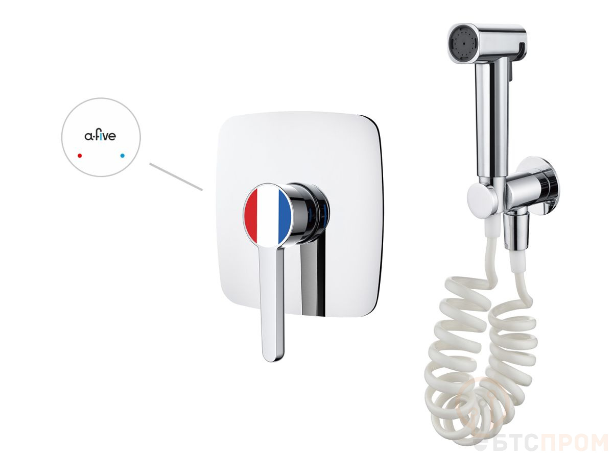 Смеситель для биде (Lt) D35, серия Lotus хром, a-five (Встраиваемый, Излива нет, Лейка 2 режима, Шланг 150 см.) A5-0550