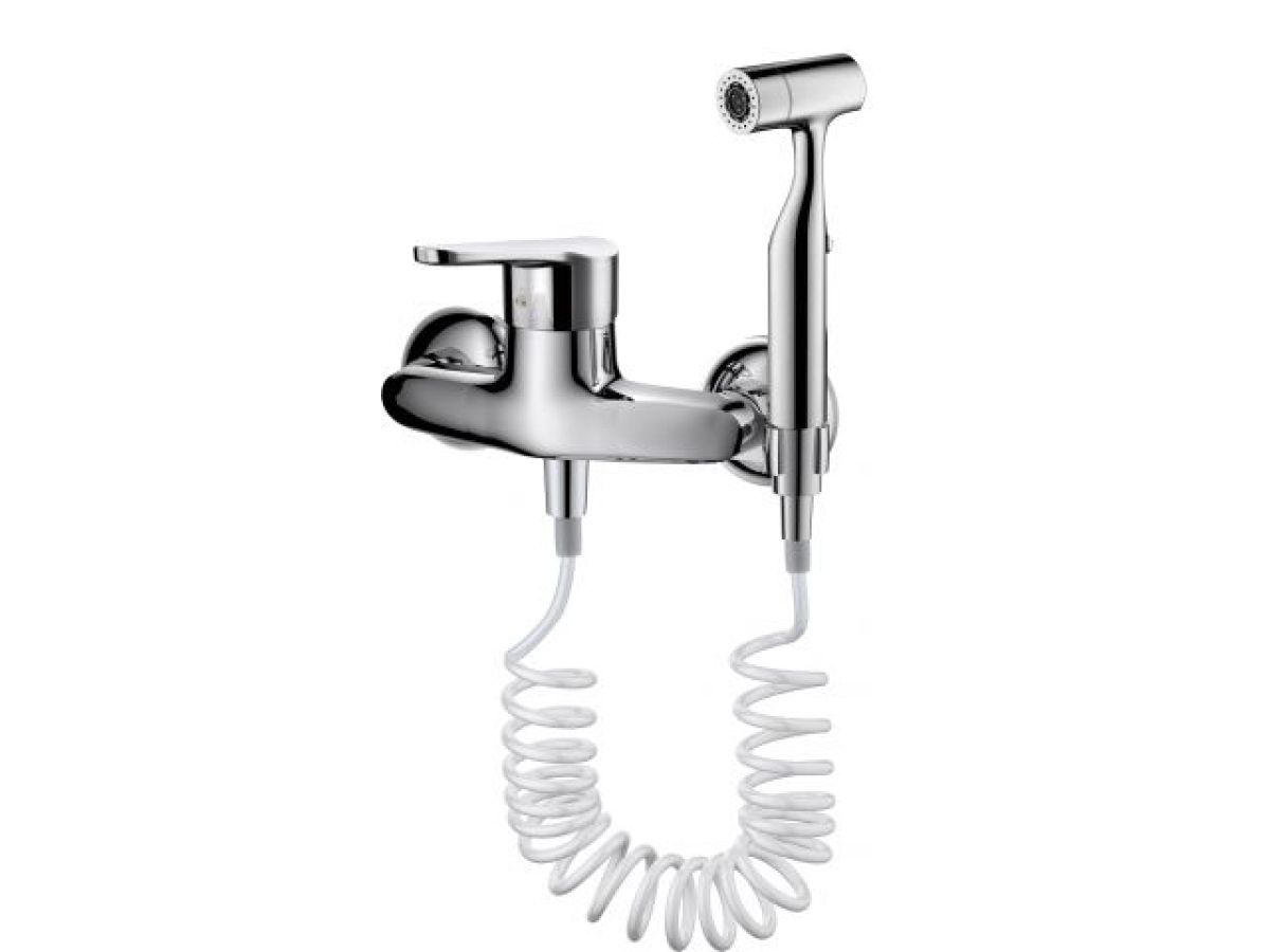 Смеситель для биде (Lt) D40, серия Crocus хром, a-five (На стену, Излива нет, Лейка 2 режима, Шланг 150 см.) A5-0145