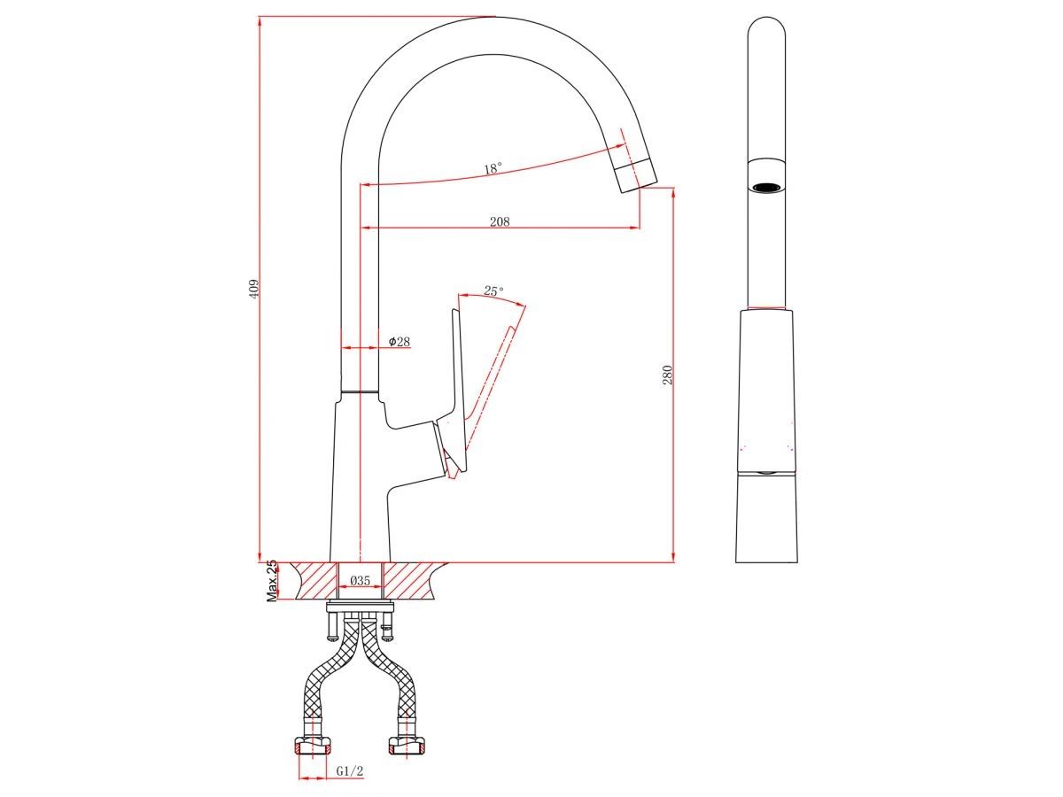 Смеситель для кухни (Lt) D35, серия Lily белый, a-five (J-излив: длина 208 мм, высота 280 мм, поворотный) A5-1324