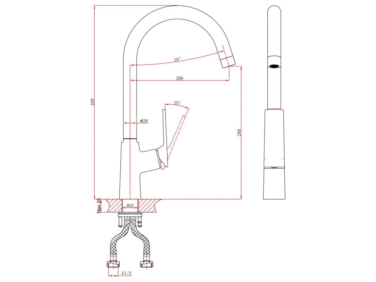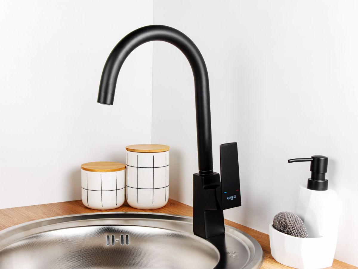 Смеситель для кухни (Lt) D35, серия Lily черный, a-five (J-излив: длина 208 мм, высота 280 мм, поворотный) A5-1224