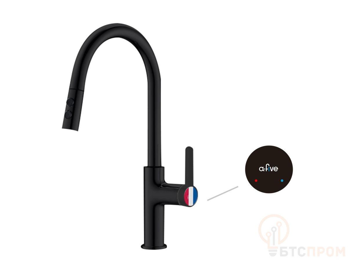 Смеситель для кухни (Lt) D35, серия Lotus черный, a-five (J-излив: длина 208 мм, высота 285 мм, вытягивающийся двухрежимный) A5-0625