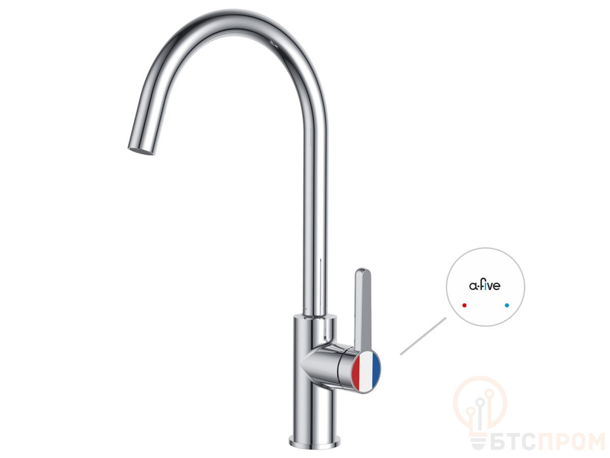 Смеситель для кухни (Lt) D35, серия Lotus хром, a-five (J-излив: длина 208 мм, высота 285 мм, поворотный) A5-0524