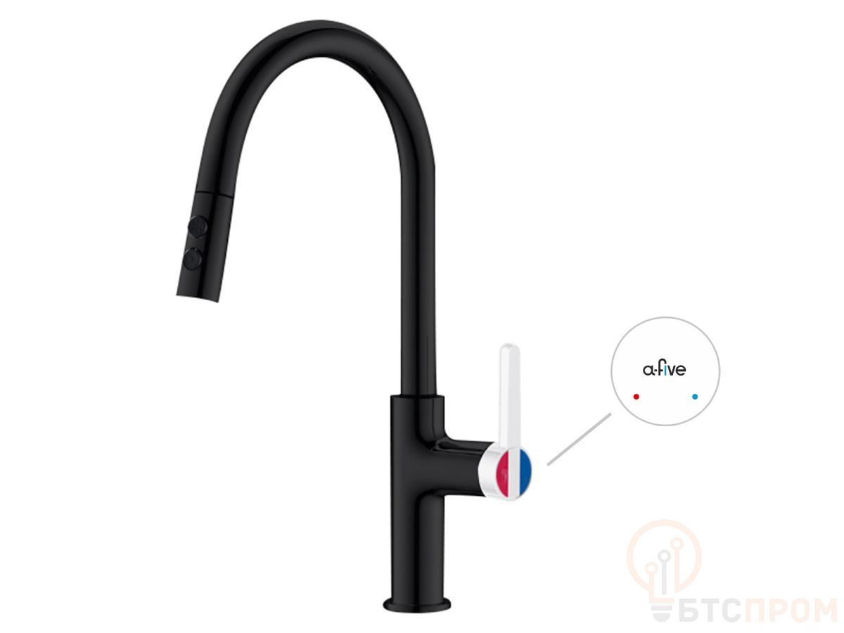 Смеситель для кухни (Lt) D35, серия Rose черный + белый, a-five (J-излив: длина 208 мм, высота 285 мм, вытягивающийся двухрежимный) A5-0825
