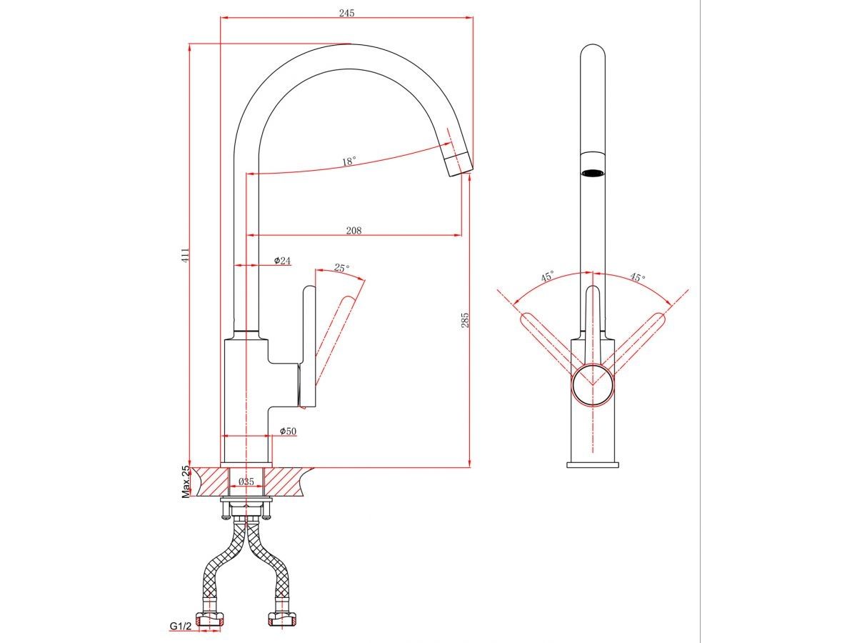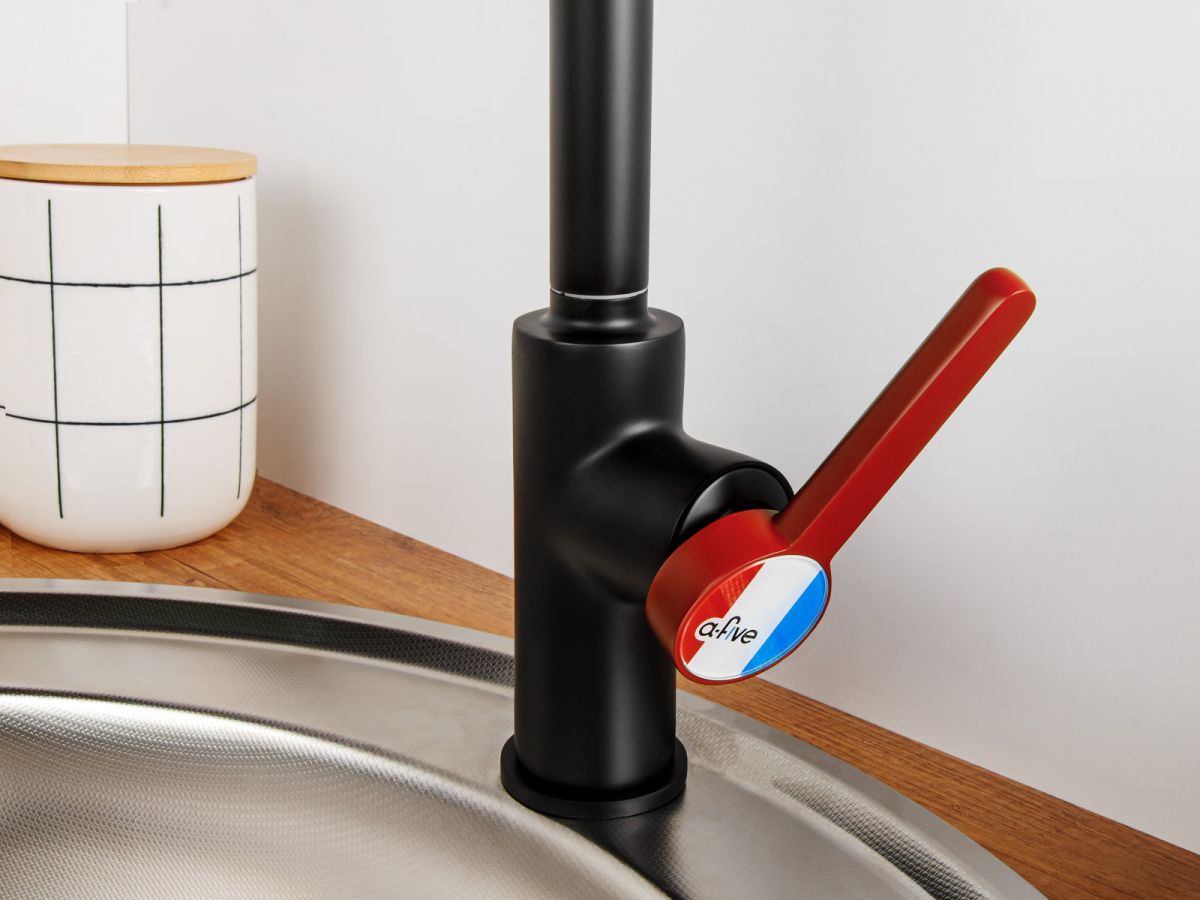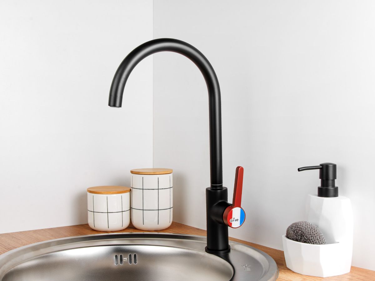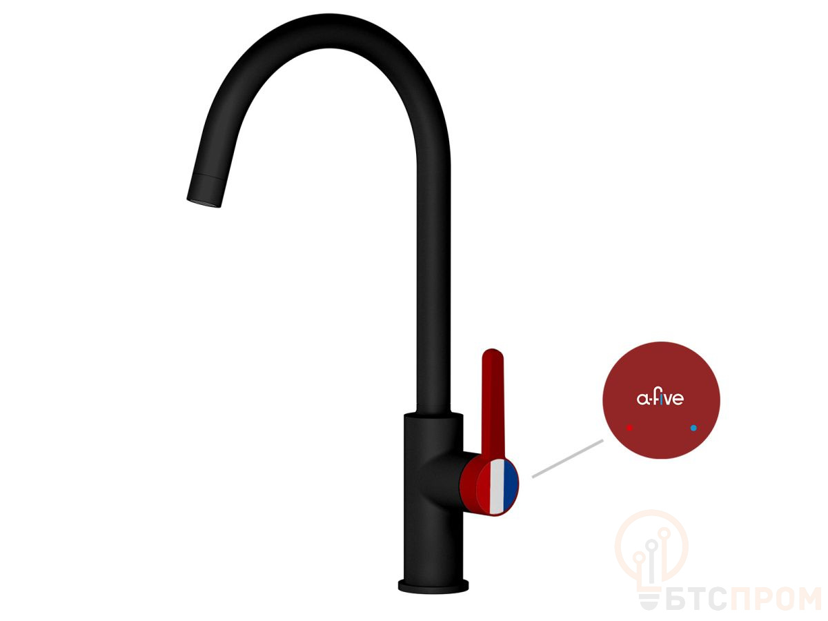 Смеситель для кухни (Lt) D35, серия Rose черный + красный, a-five (J-излив: длина 208 мм, высота 285 мм, поворотный) A5-1024
