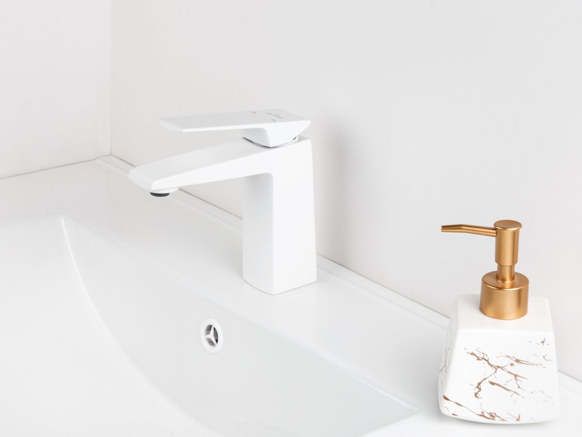 Смеситель для умывальника (Lt) D35, серия Lily белый, a-five (Излив: длина 150 мм, высота 160 мм, монолитный) A5-1321