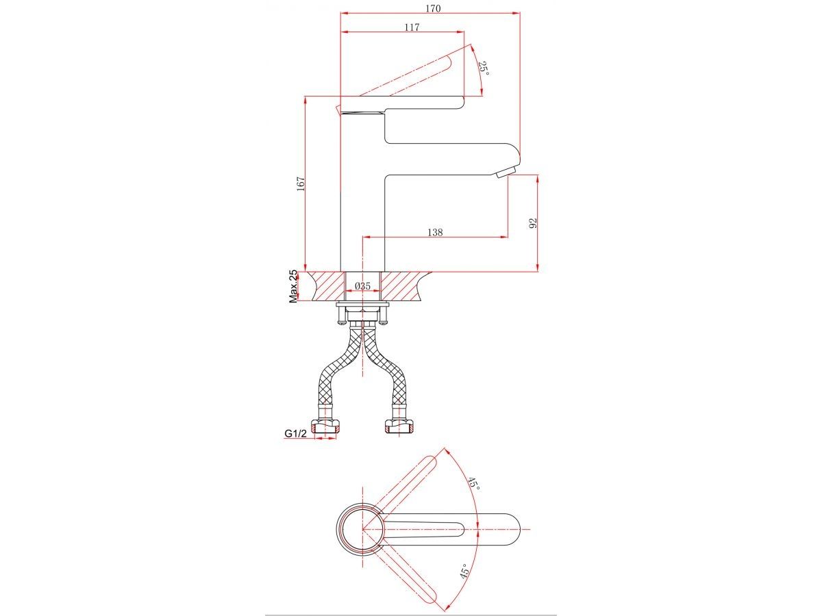 Смеситель для умывальника (Lt) D35, серия Lotus хром, a-five (Излив: длина 170 мм, высота 92 мм, монолитный) A5-0521