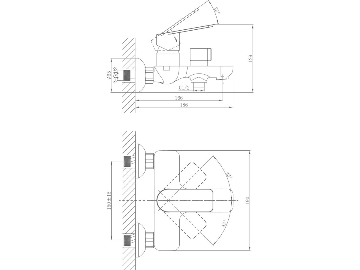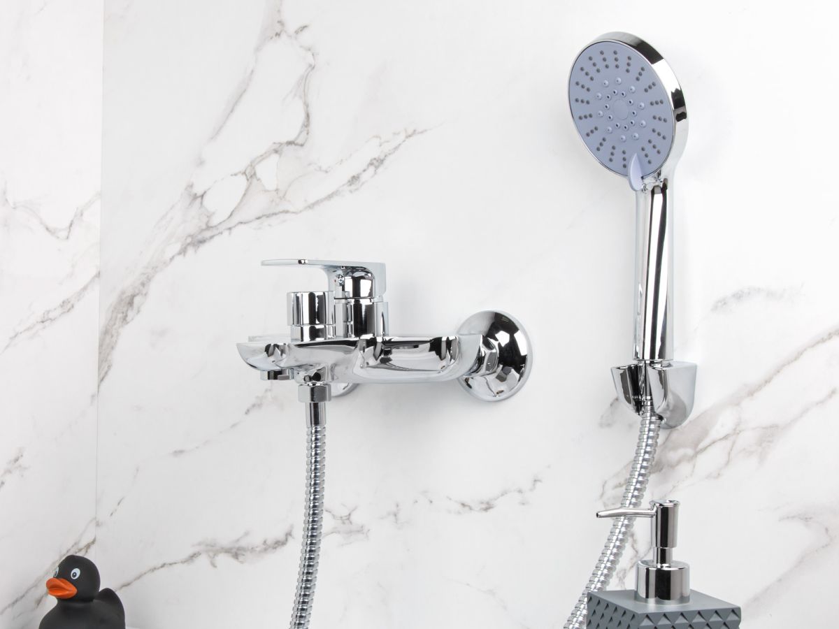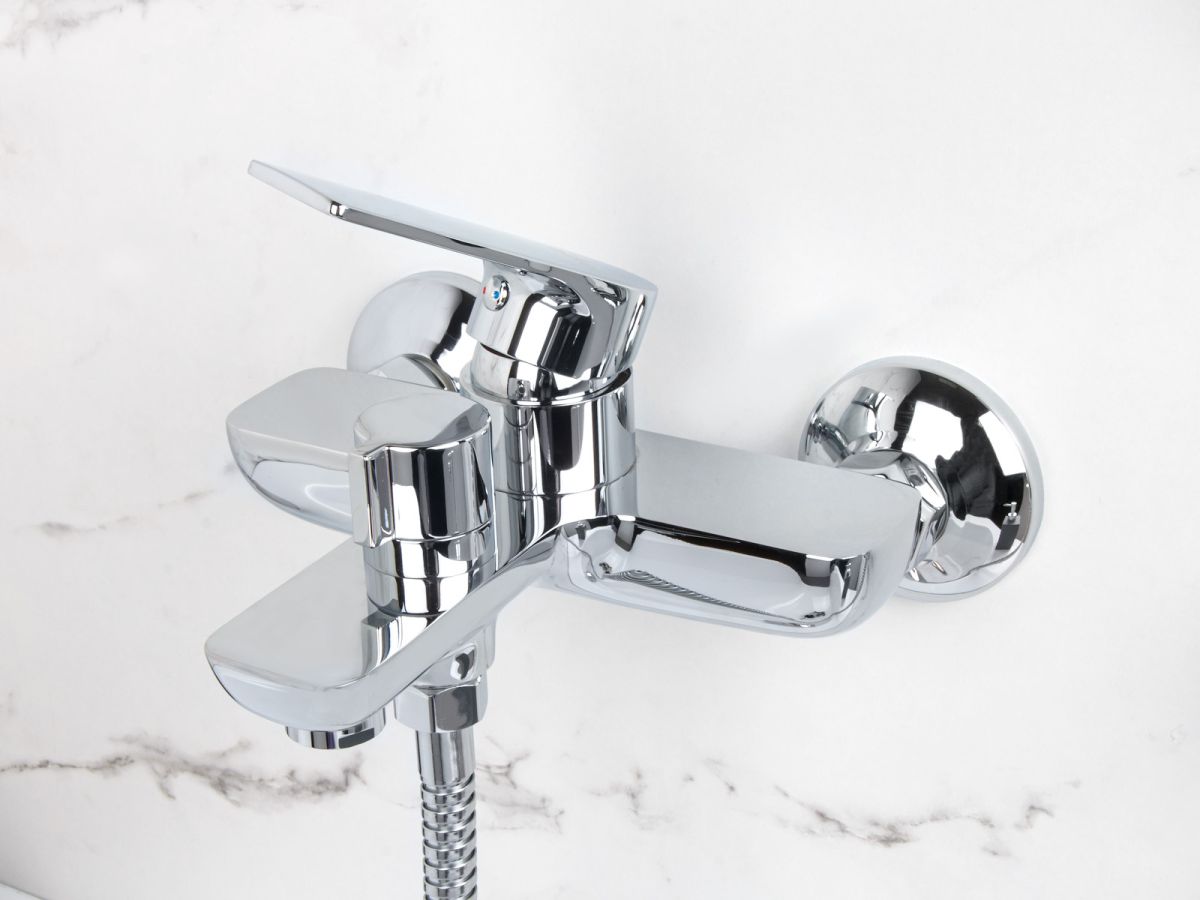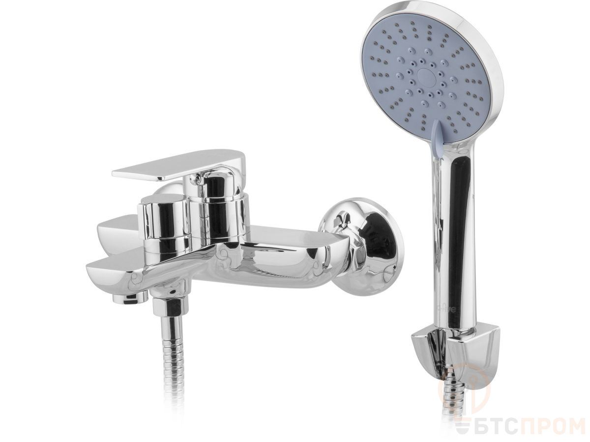 Смеситель для ванны (Lt) D35, серия Camellia хром, a-five (На стену, Короткий излив 166 мм. Лейка и шланг в комплекте) A5-0432
