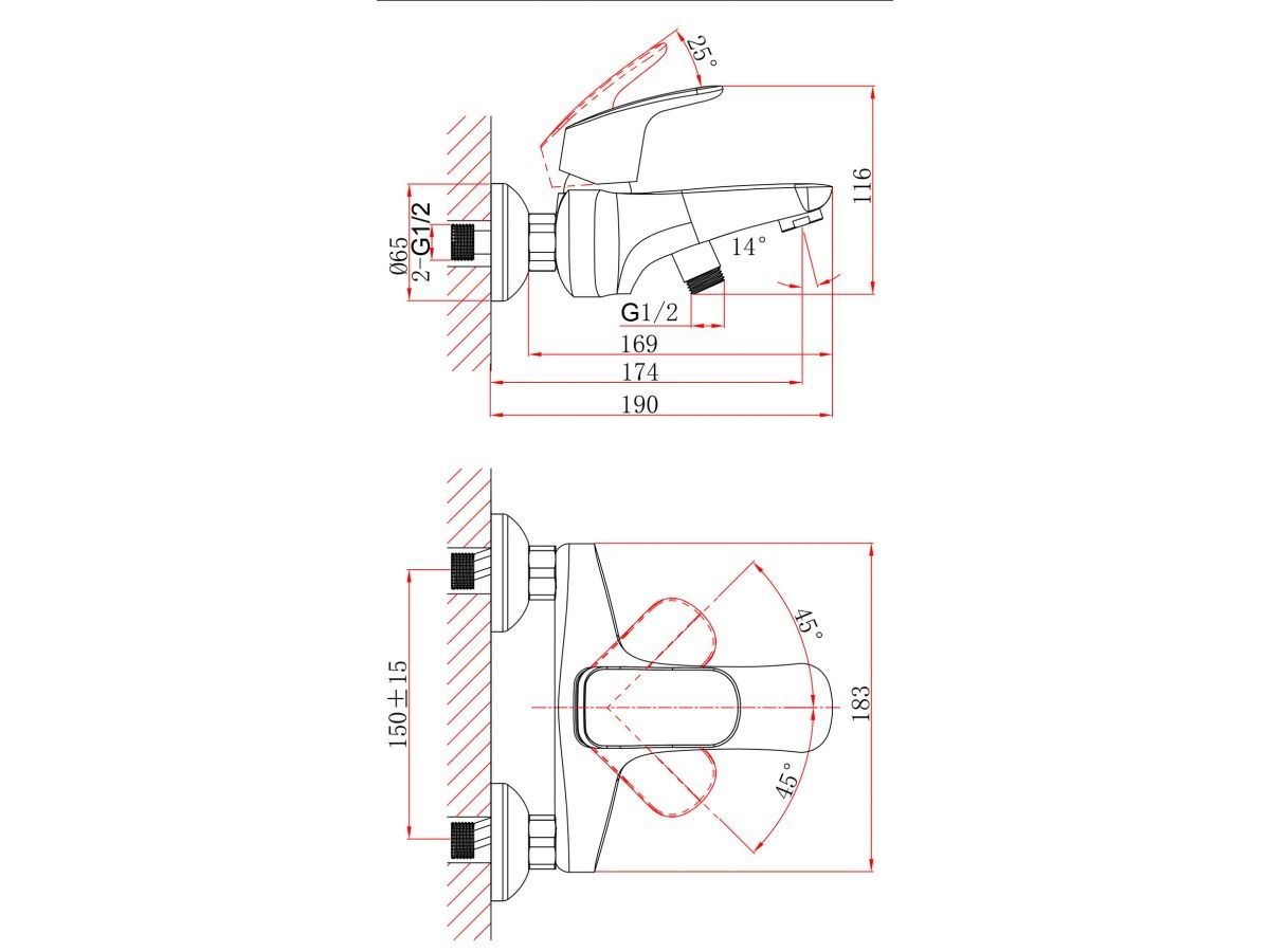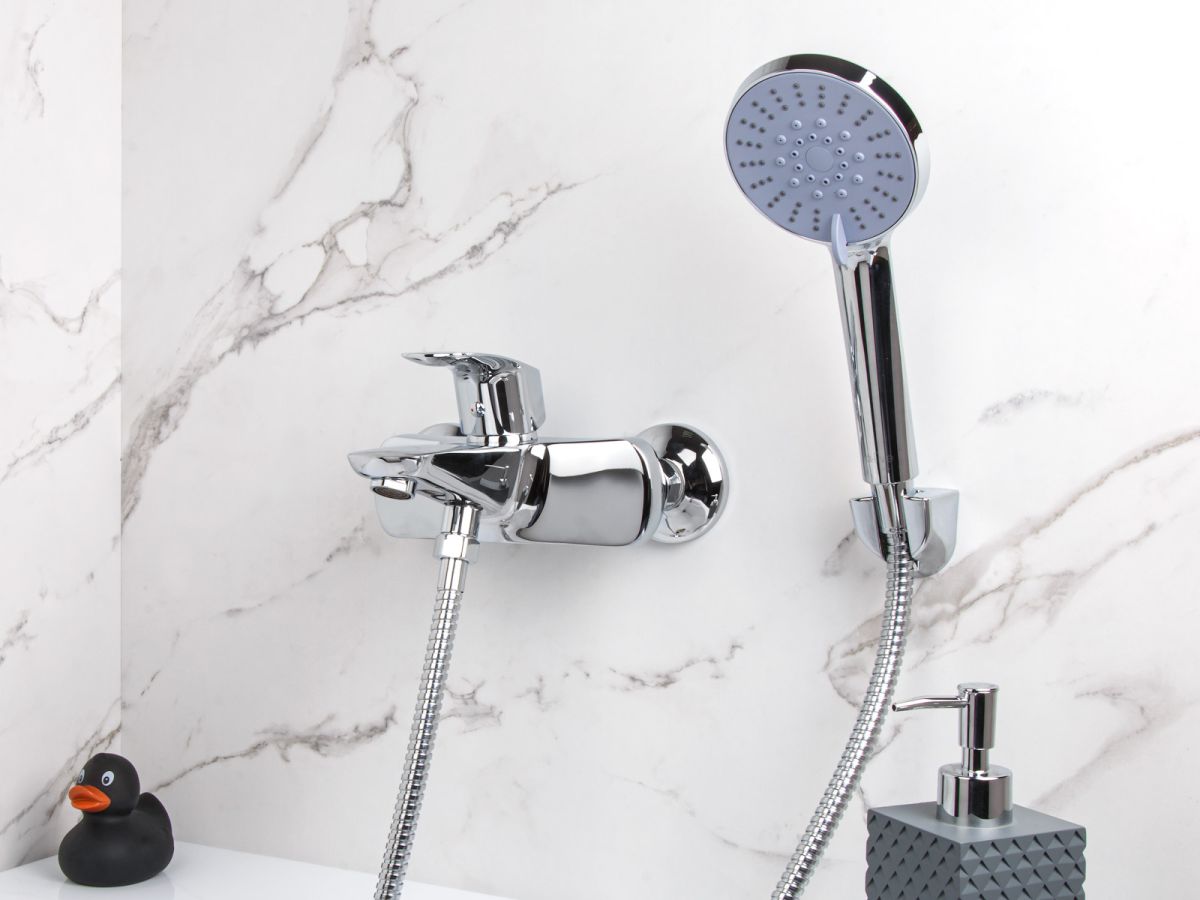 Смеситель для ванны (Lt) D35, серия Daisy хром, a-five (На стену, излив 174 мм, монолитный.Лейка и шланг в комплекте) A5-0332