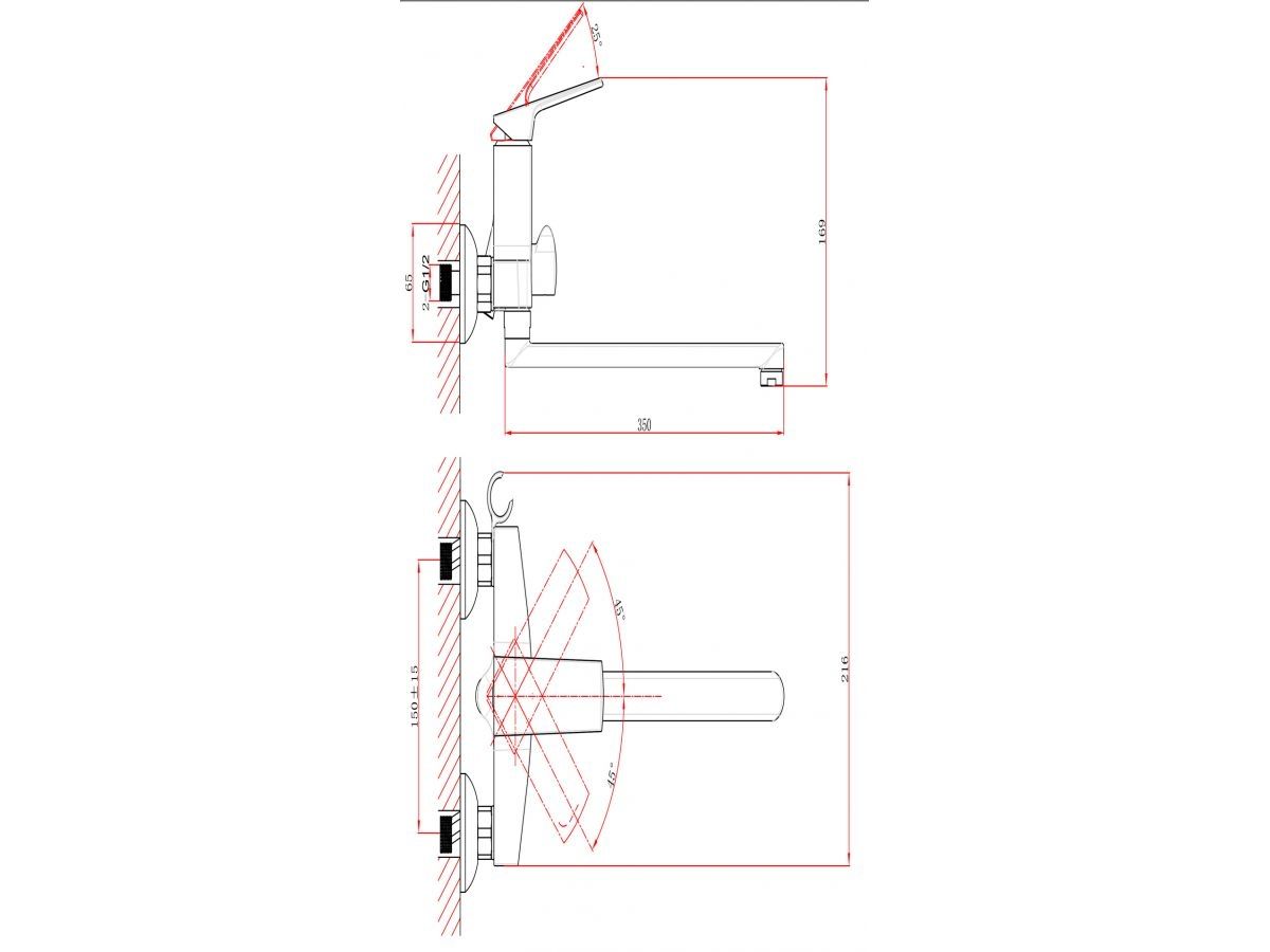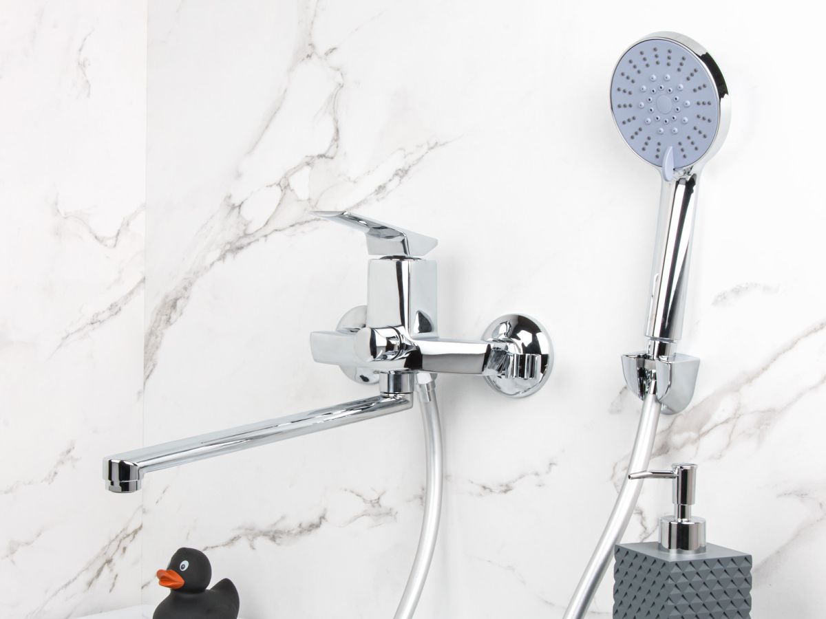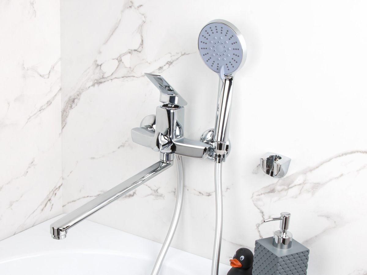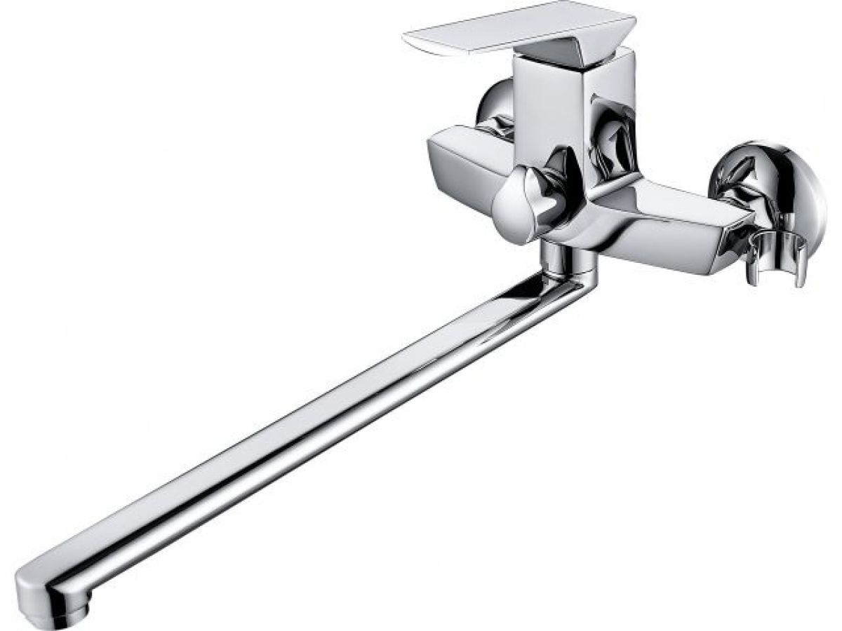 Смеситель для ванны (Lt) D35, серия Lily хром, a-five (На стену, L-излив 350 мм., поворотный. Лейка и шланг в комлпекте) A5-1133