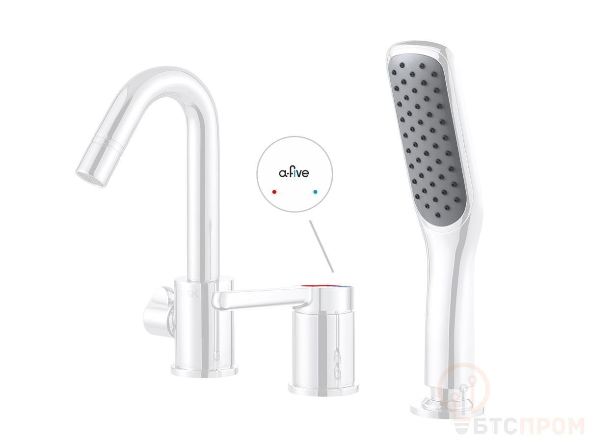 Смеситель для ванны (Lt) D35, серия Lotus белый, a-five (На борт, Поворотный J-излив, 141 мм.) A5-0749