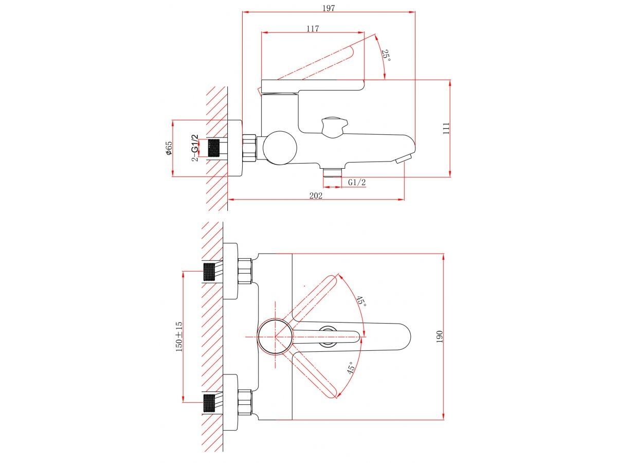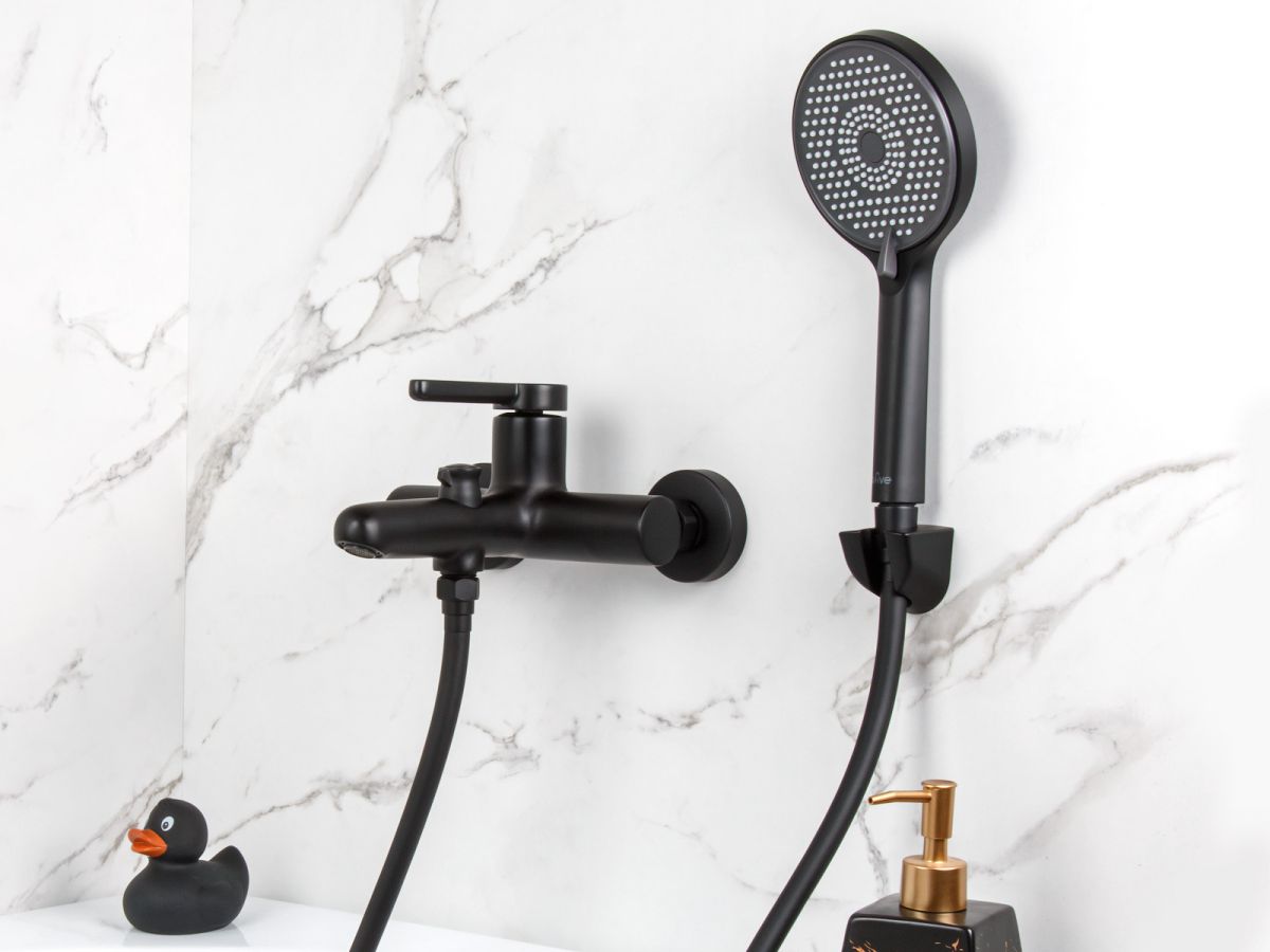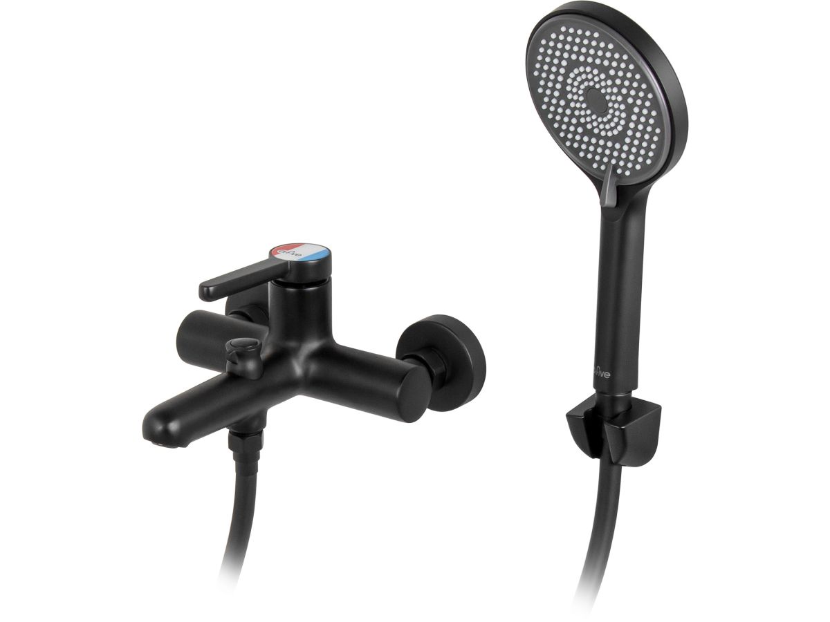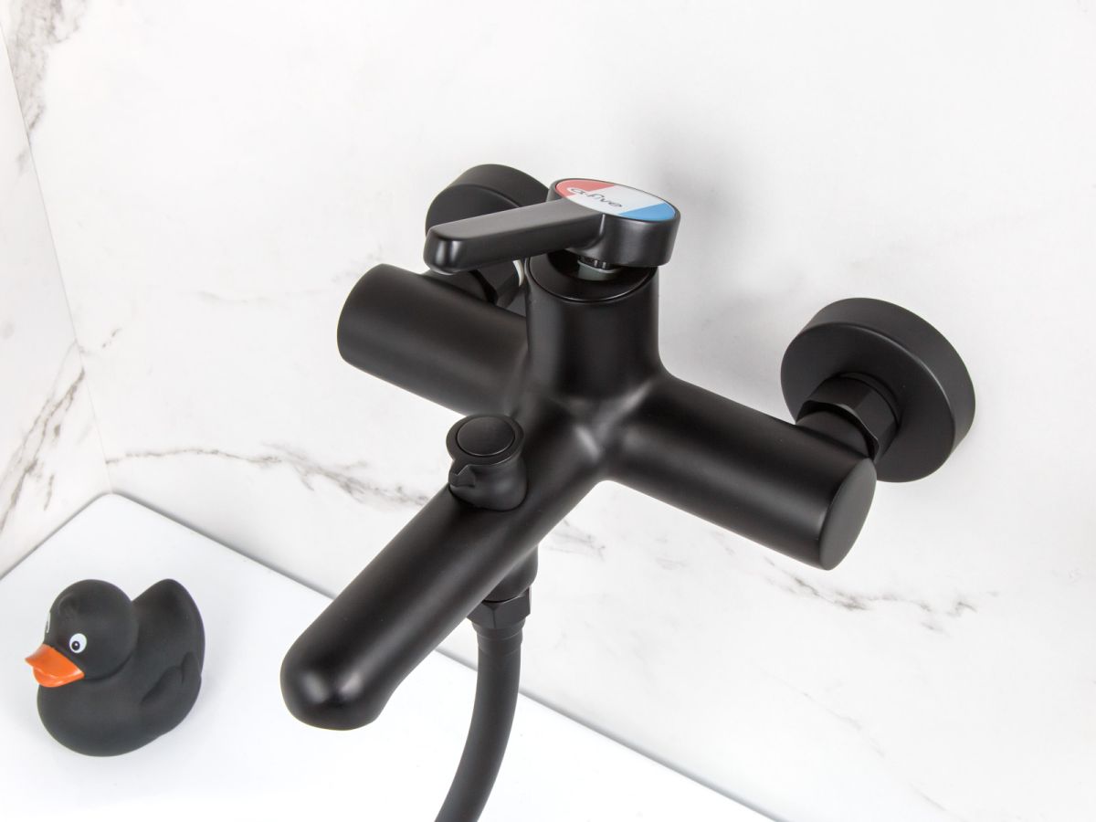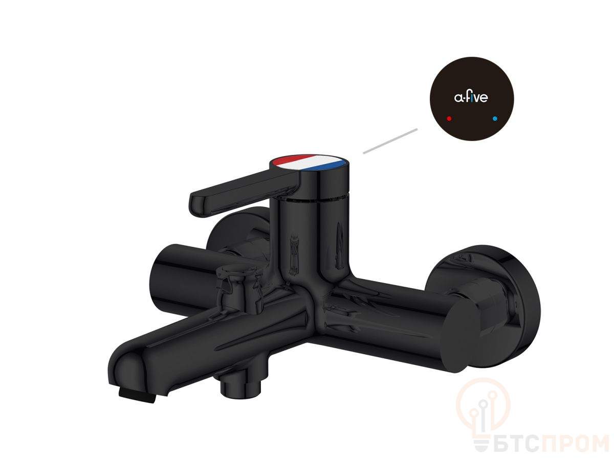 Смеситель для ванны (Lt) D35, серия Lotus черный, a-five (На стену, Короткий излив 202 мм. Лейка и шланг в комплекте) A5-0632